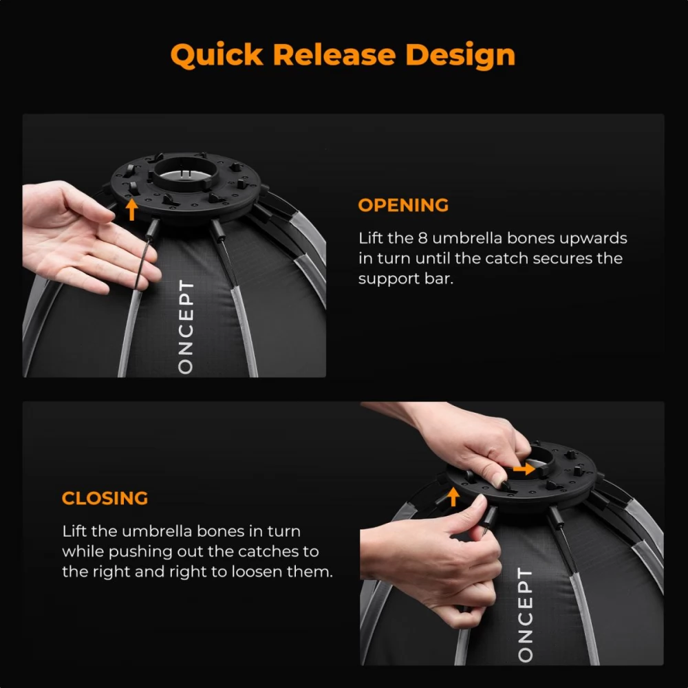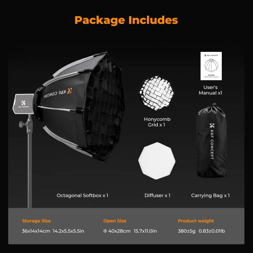 - Diameter: 40 cm compact yet effective light shaping