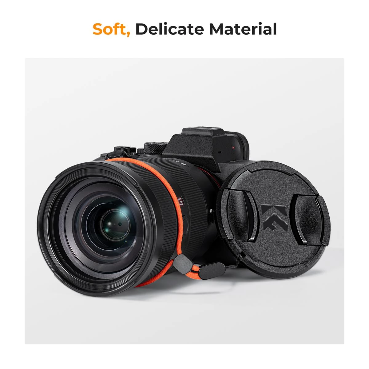 The K&F Concept lens cap with cord and wipe is a practical accessory that is ideal for protecting 58mm lenses. The built-in cord ensures that the cap is always close at hand, while the cleaning cloth helps keep the lens clean.