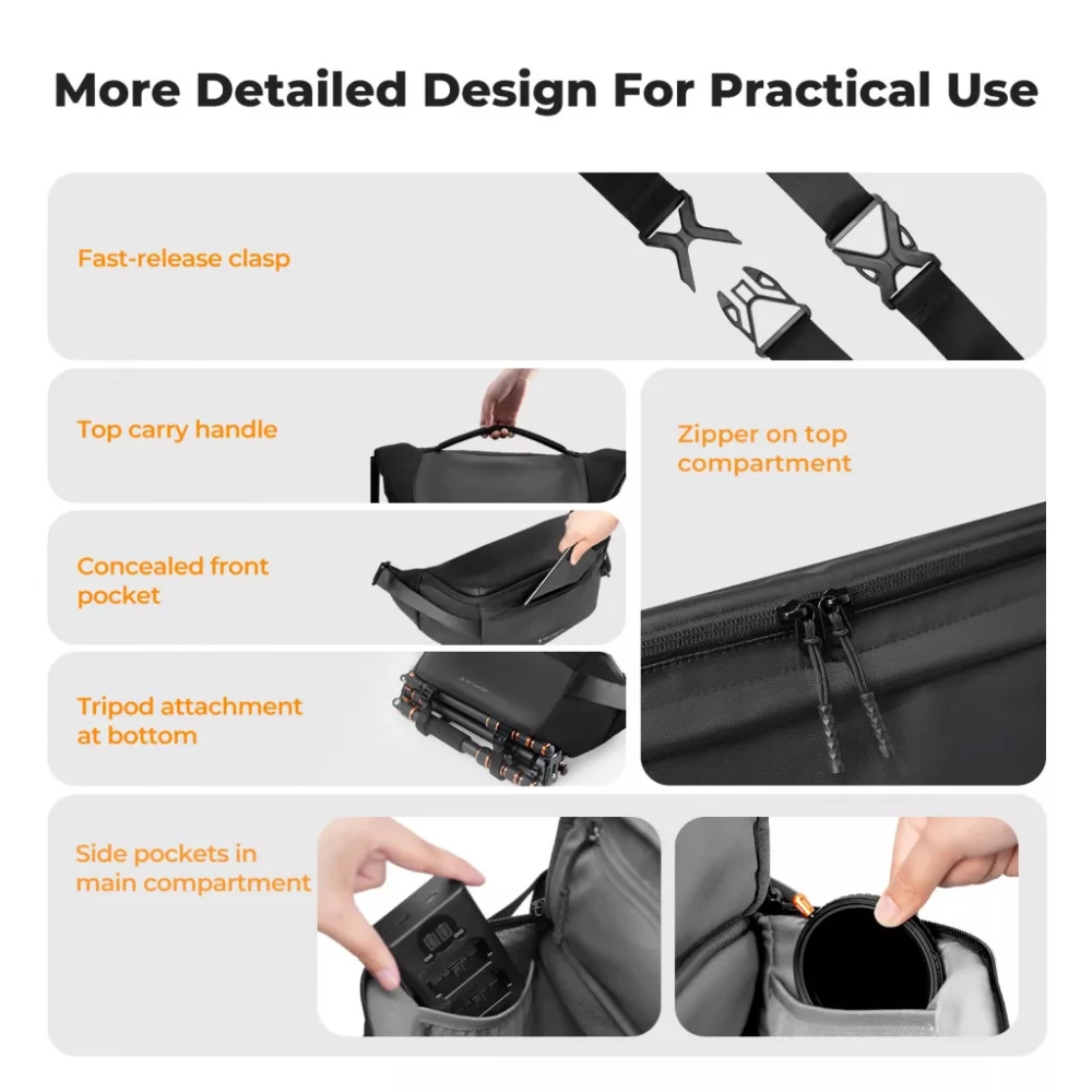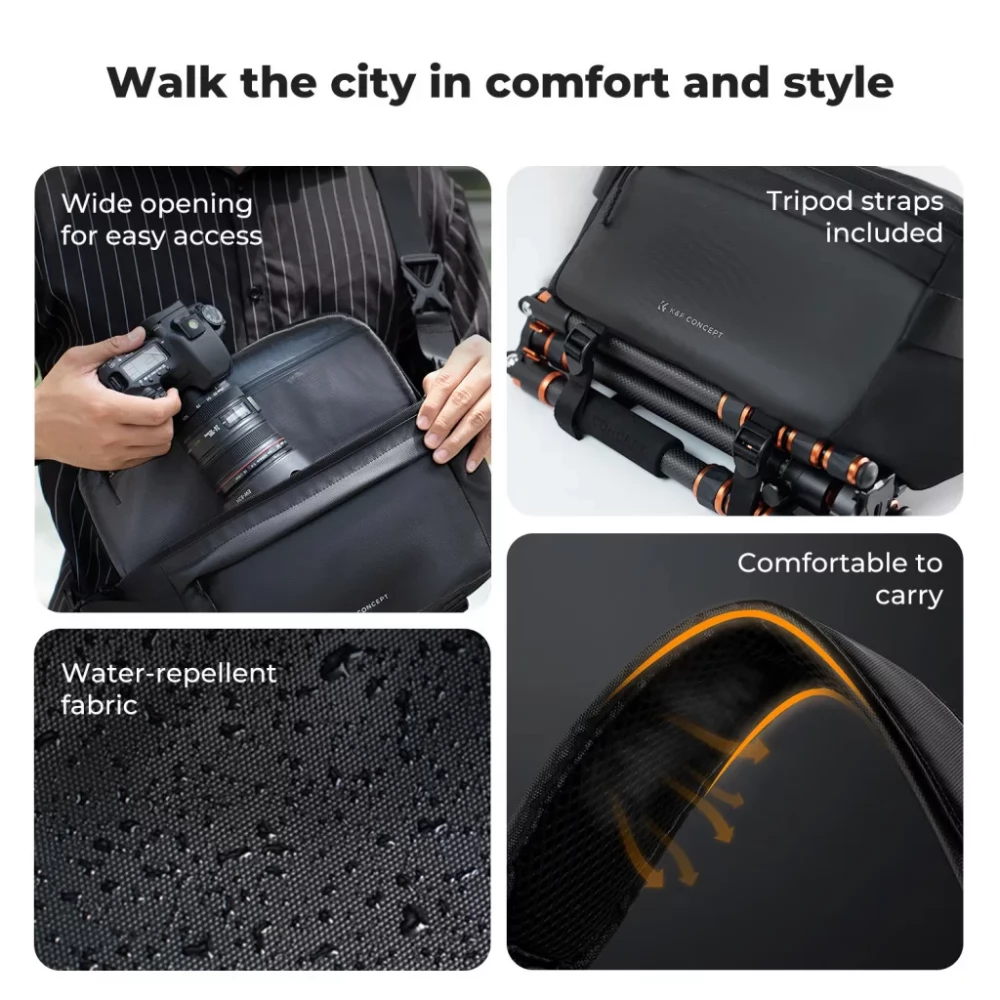 The K&F Concept Urban Wander Sling 12L is a stylish and versatile photography side bag designed for the needs of modern urban photographers and travelers. In addition to its compact size, it offers ample internal capacity, making it an ideal choice for everyday photography, travel or short tours.