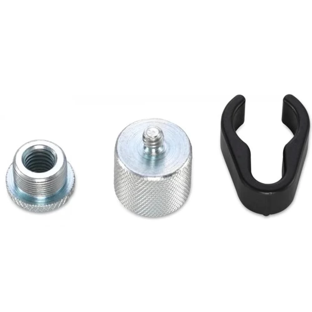- 3/8" screw thread; 1/4" and 5/8" adapter included