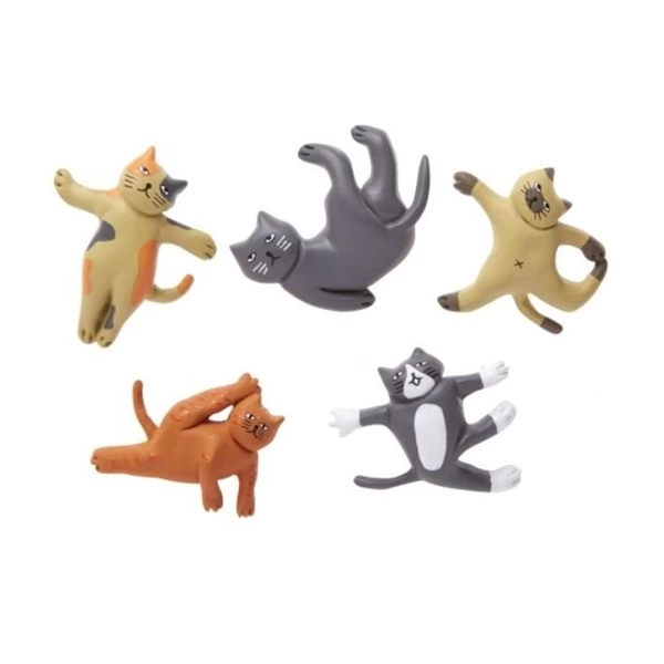 The five fun, hand -painted yoga cica gives Zen touch to each magnetic board or refrigerator. Design of Eiko Simada. Miaumaste!