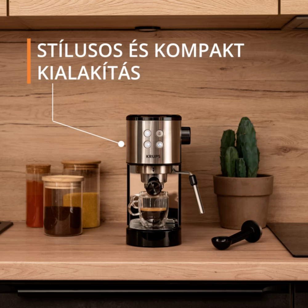 Arm coffee maker with an intuitive control panel and automatic shutdown that guides you through the full process of making perfect espresso, in barista quality.