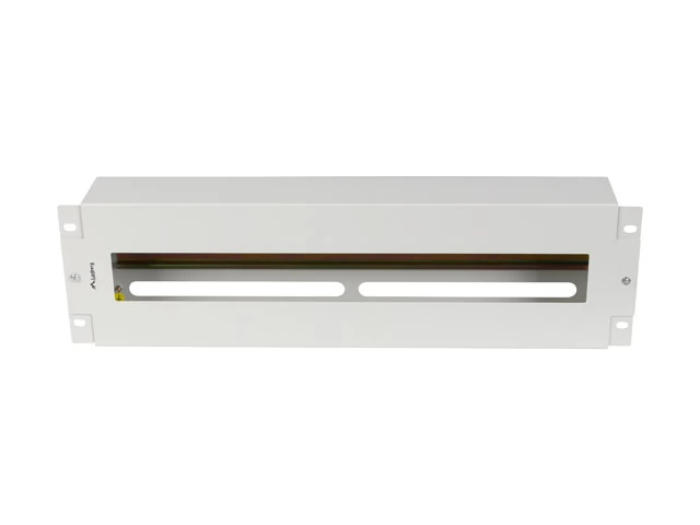 Power distribution panel in standard 19" size and 3U height. TS-35 is equipped with DIN rail, cover, cable management and grounding to meet all your needs.