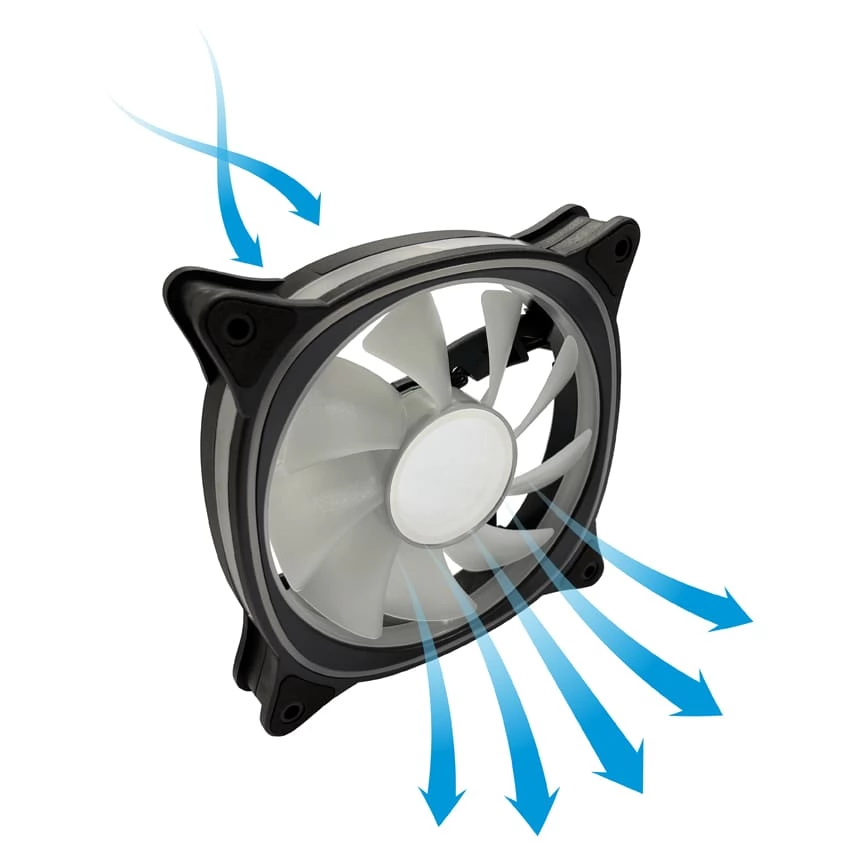 3 pieces of 120mm house cooler fan can be controlled by ARGB lighting (frame and blades), infinite mirror effect and PWM speed control. In the kit we also get an external control unit. In the name of cooling, the letter R indicates that the fans are inversely blade and the air flow is in opposite direction.