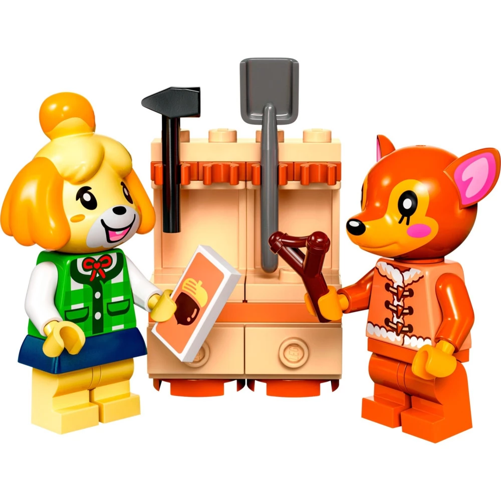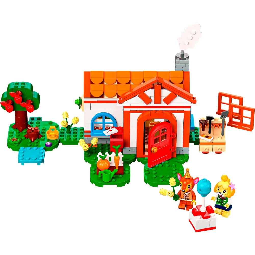 With the Isabelle Visits (77049) playset, kids can create their own stories inspired by the Animal Crossing video game series. The children look around Fauna's house with Isabelle. The interior, resplendent in the colors of Fauna, is full of familiar details, but also hides new elements, encouraging children to invent new stories for the figures. They can shoot the slingshot to pop the balloon that hides the gifts, check the phone dial to see if there is a message, post a letter in the mailbox, or help the minifigure water the garden and pick apples from the tree. There is a DIY recipe on the workbench and a hidden surprise in the wood. Kids can rearrange the furniture, replace the window frames, and even rebuild the baseboard to decide what the house should look like.