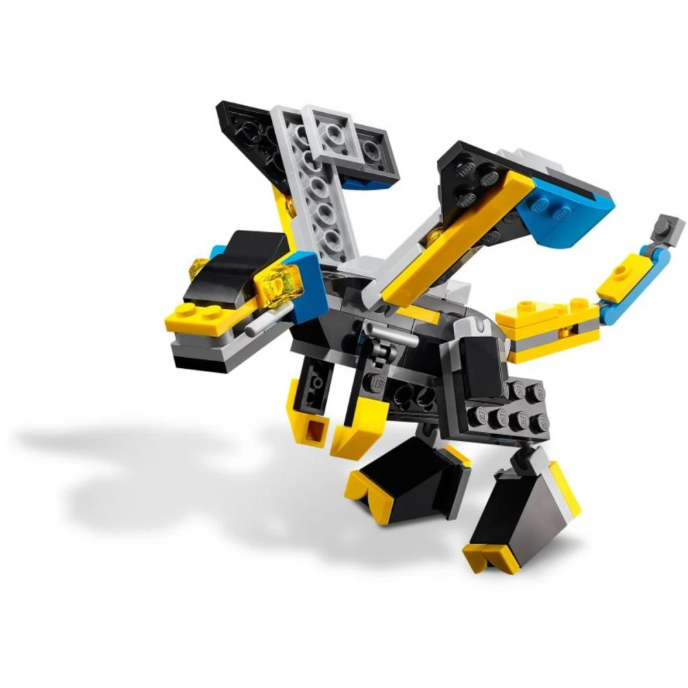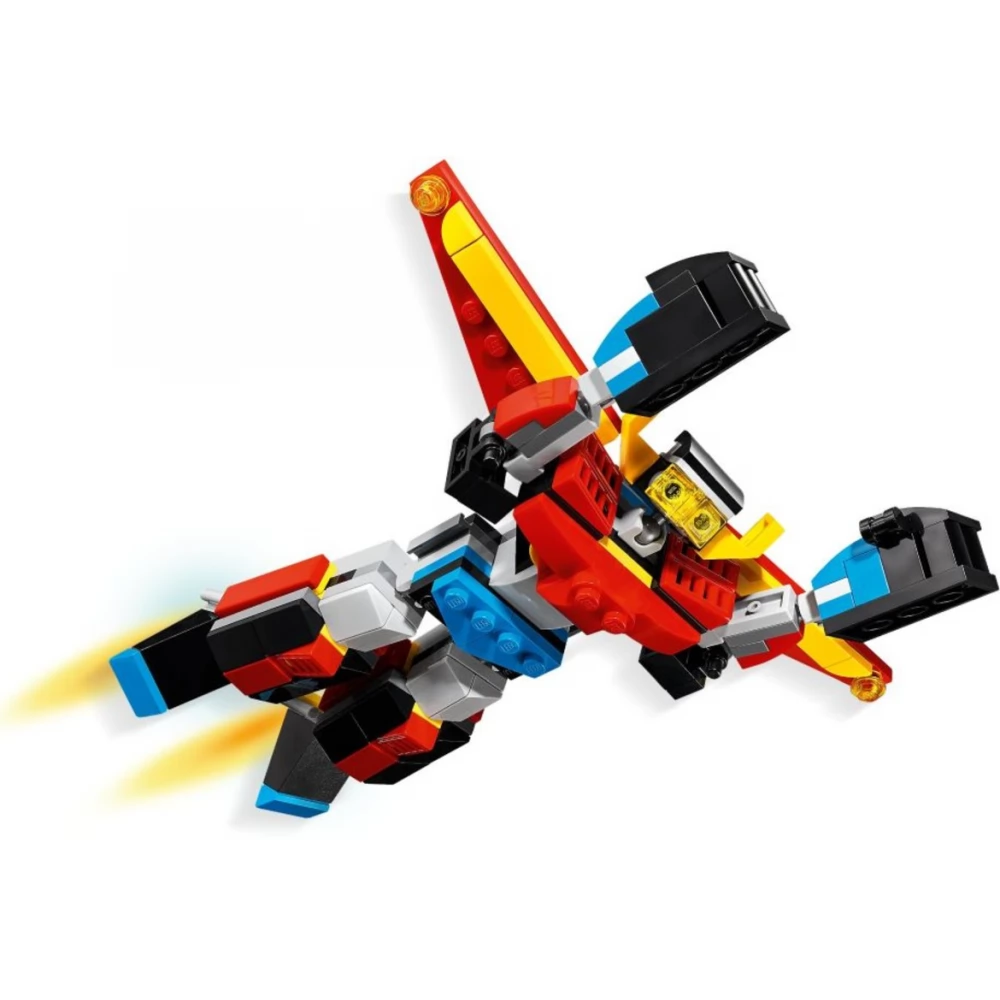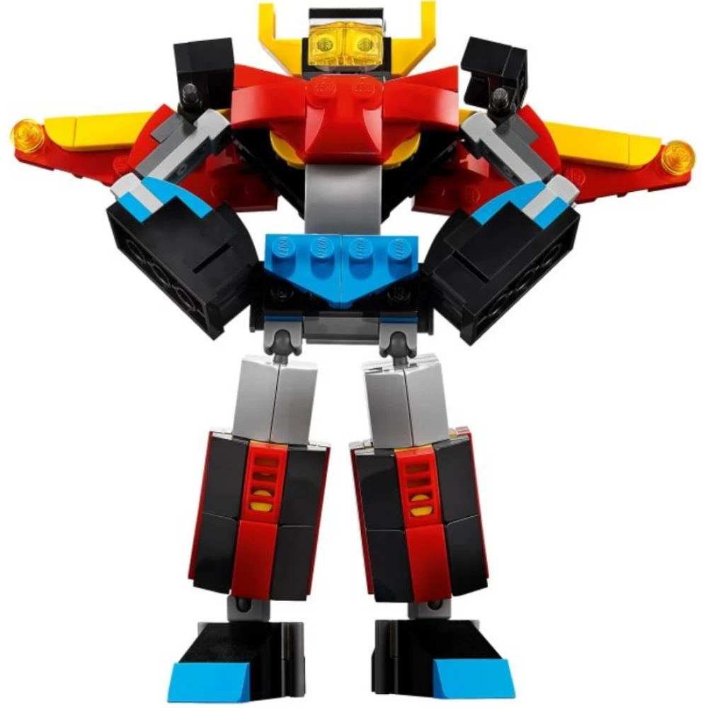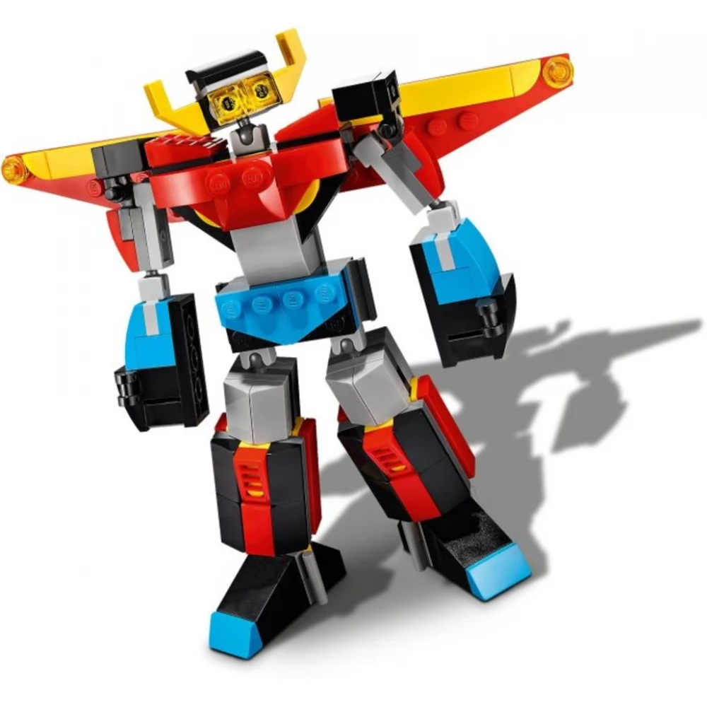 Little LEGO® fans will be delighted to play out action-packed, futuristic stories with this Creator Super Robot (31124). With an adjustable head, legs, feet, arms and hands, and a pair of wings on its back, this adorable robot has everything kids need for exciting fun. 3-in-1 building toys for kids This LEGO Creator 3-in-1 building set offers 3 different play experiences for children. They can build the adjustable super robot with wings on its back, then transform it into an adjustable robot dragon or a brilliant jet plane with adjustable wings. You can explore the world of possibilities with 3 models in each box.