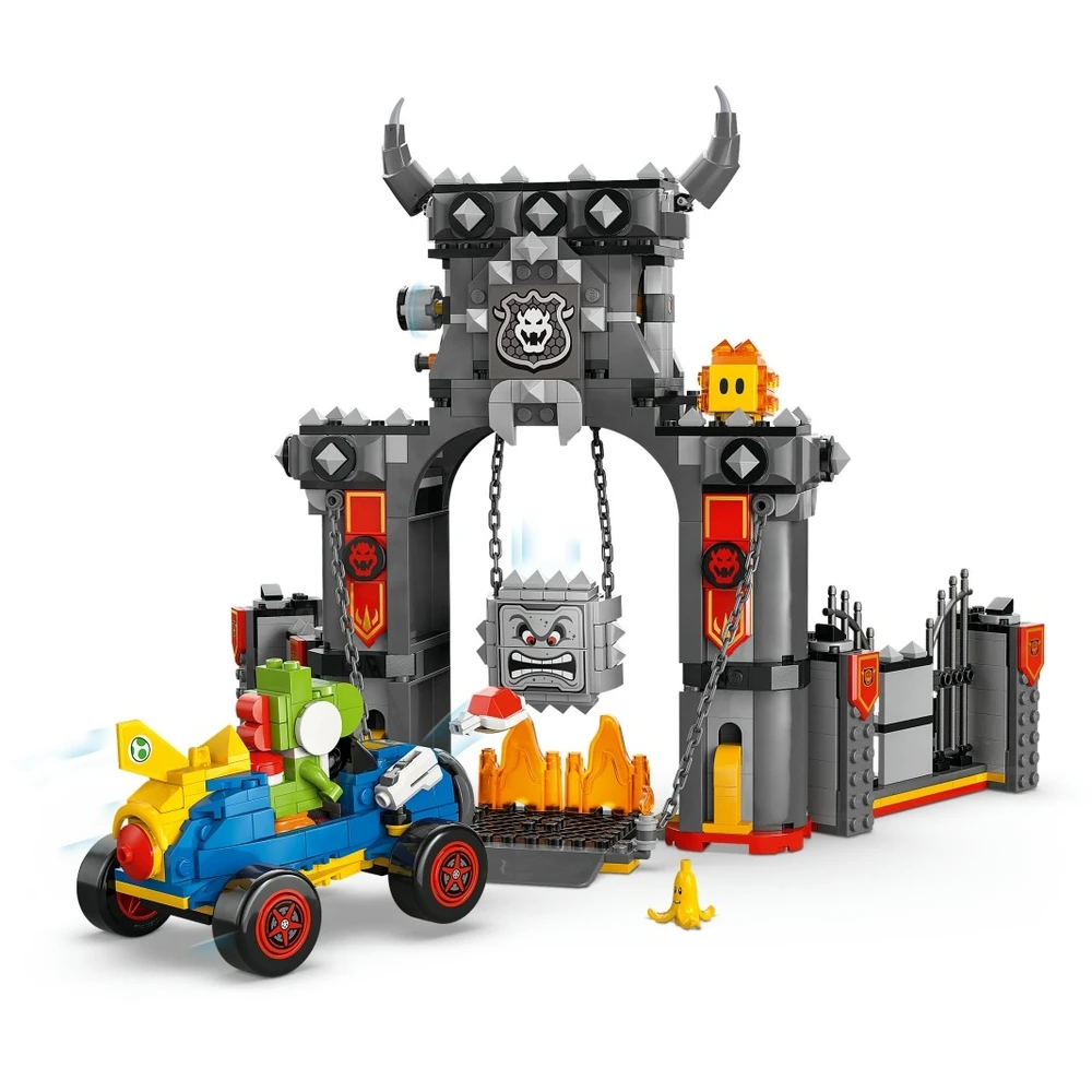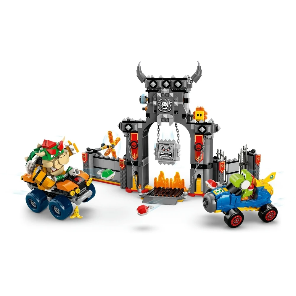 Get ready to race at Bowser's Castle with this LEGO® Super Mario™ Mario Kart™ Race Set (72039) for kids with a toy vehicle! This set makes a great Nintendo® character gift for boys, girls and gamers aged 9 and up, as it includes Bowser's castle, which Bowser can stand on top of, and fun features like fold-out walls and a rotating fire pillar. Drive, drift and shoot turtle shells with Bowser driving a Standard ATV and Yoshi driving a Mach 8 go-kart, smash through castle walls, dodge swinging Thwomps and knock over Lava Bubbles! This building toy includes 4 LEGO Super Mario figures: Bowser, Yoshi, Thwomp and Lava Bubble. For interactive play, put a LEGO® Mario™, a LEGO® Luigi™ or a LEGO® Peach™ figure in the car (from one of the separately sold sets 71439, 71440, 71441 or 72043) and create Mario Kart sound and visual effects while driving! Explore the range of LEGO Super Mario: Mario Kart playsets (sold separately) to add even more vehicles and figures to the game. This set consists of 1068 items.