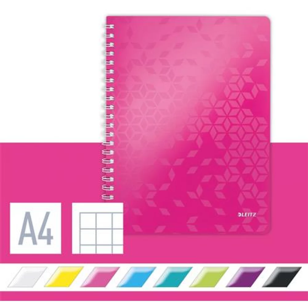 LEITZ Wow spirálfüzet A4 squares 80 lap pink