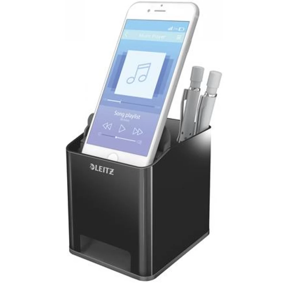 - Thanks to its unique design, it amplifies the sound of the phone placed on the phone holder compartment