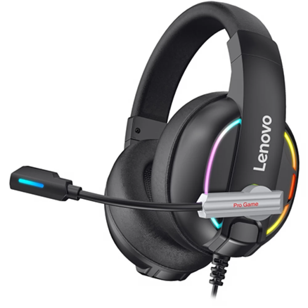 Immerse yourself in the game and break another record with the Lenovo HU75 gaming headset. The adjustable HD microphone enables comfortable communication with other players, and the large, soft ear cushions ensure comfortable use. The product is characterized by wide compatibility, and the colorful backlight lends it a playful character.