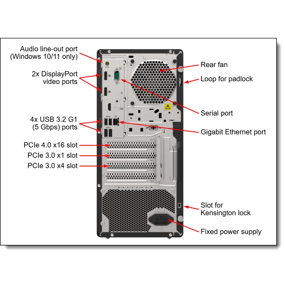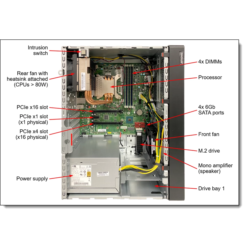 Lenovo ThinkSystem ST50 v2 server with Intel Xeon E-2324G processor, 1x16 GB memory, 1 TB hard disk backup storage.