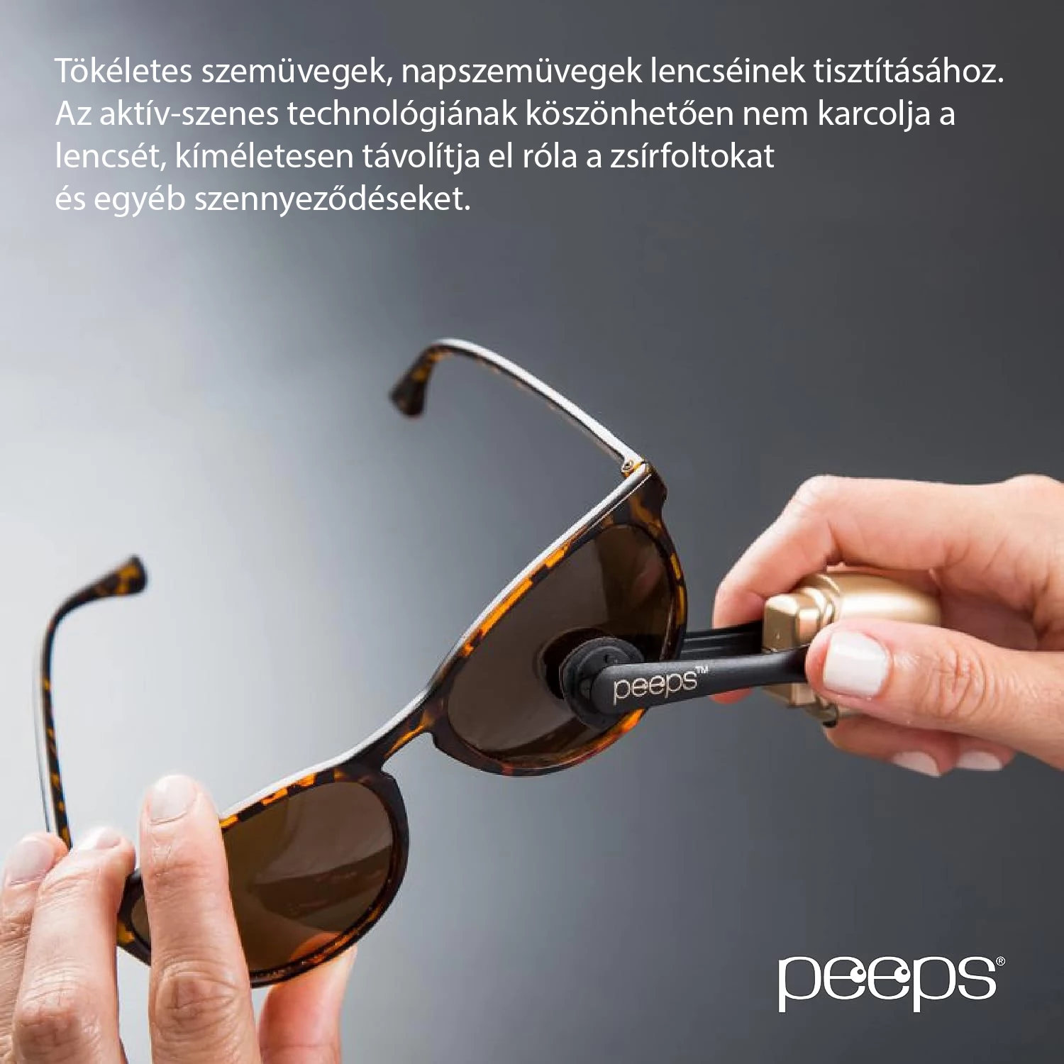 PEEPS's unique carbon cleansing system effectively attracts and neutralizes impurities, unlike traditional microfiber cloths, which often only smear them. This technology provides stainless and crystal clear lenses after each use.