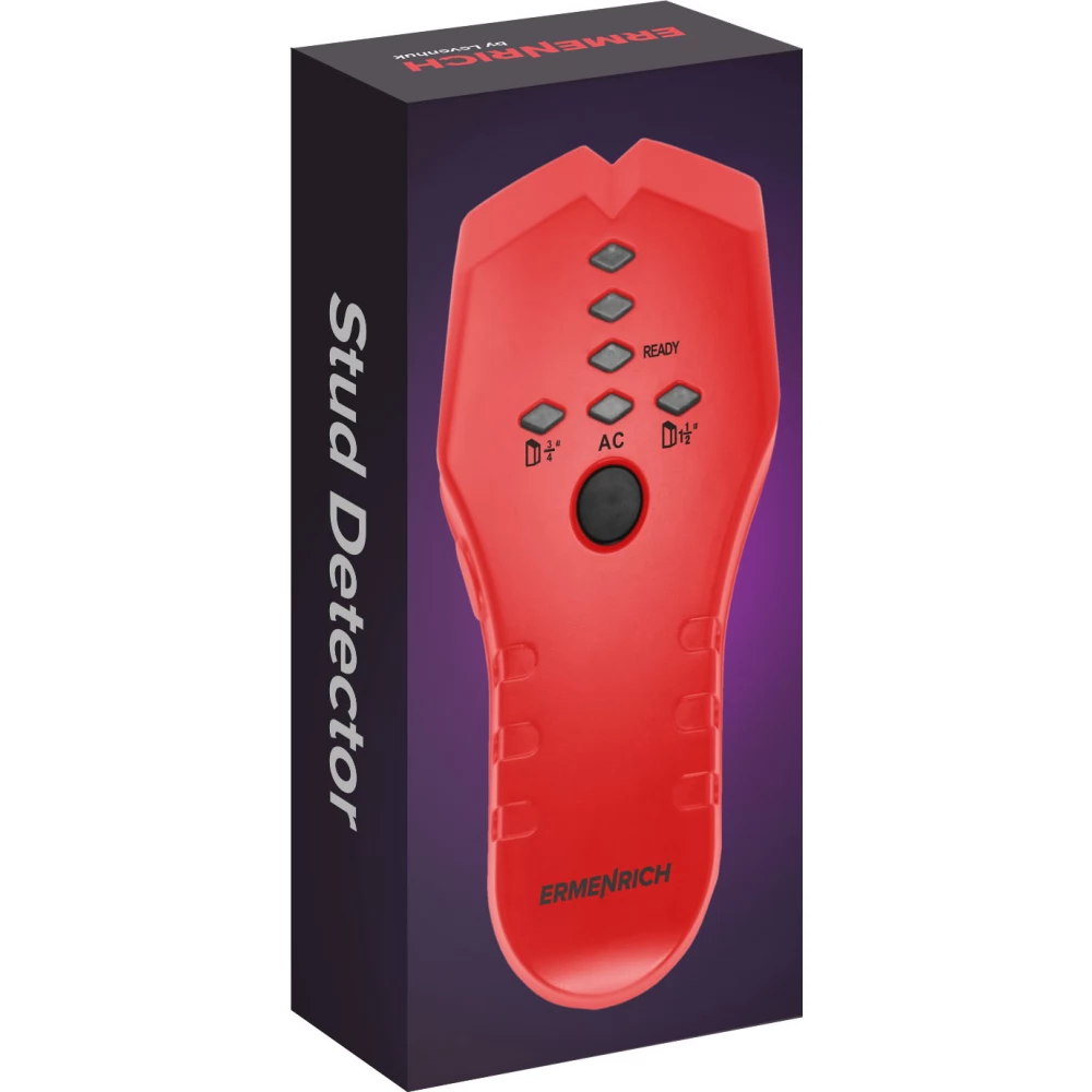 The Ermenrich Ping SA30 is a portable wall scanner that offers multiple modes. A useful tool for architects, mechanics, maintenance workers and other professionals. It is also useful in everyday life. The scanner uses electronic sensors to scan the surface of walls and slabs to detect hidden objects behind them. These can be metal structures or wooden elements, e.g. beams or old frame structures. Furthermore, if the device detects a wire, it emits a sound signal. With the help of the wall scanner, you can easily select the right point for drilling, so you can do the job quickly, easily and safely.
