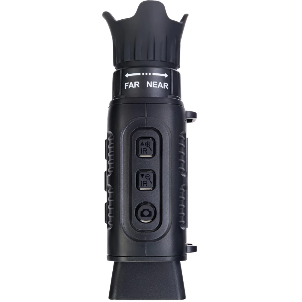 The optical elements are made of silicon dioxide glass with an anti-reflective coating. Thanks to this, the monocular provides a clear and contrasting image in the dark, and a detailed, bright image during the day. During the day, any object can be examined, regardless of the distance. At night, the range of vision is limited to 300 meters. For better visibility in total darkness, it is recommended to use infrared lighting. A total of 7 brightness levels are available, so the lighting can be controlled according to the given light conditions. For better battery life, you should keep the brightness at a minimum level, and if you want to see the image as detailed as possible, use the maximum brightness level.