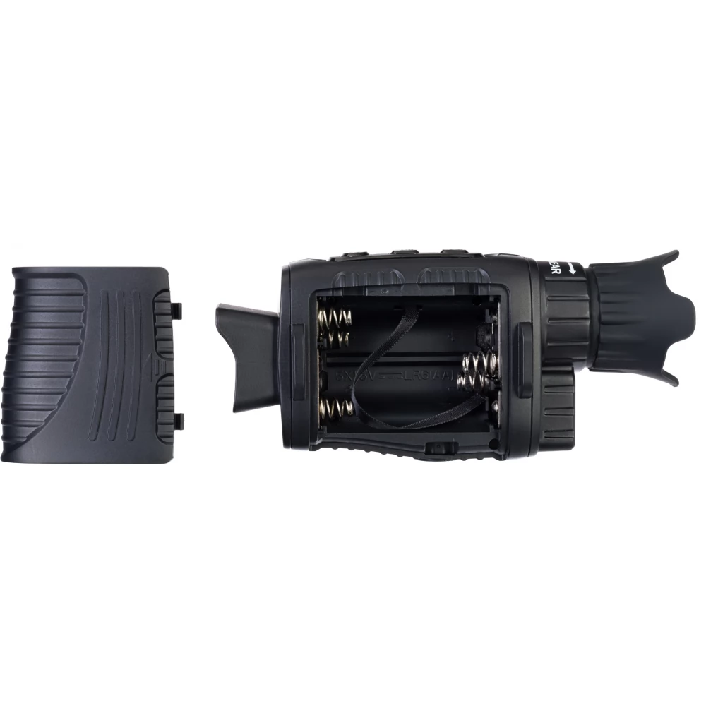 The monocular has a drop-resistant 1/4" threaded frame. The monocular is ergonomically designed and comfortable to hold. The device is extremely user-friendly. The night vision monocular is powered by AA batteries (sold separately), as it is the most obvious solution in field conditions. . Dead batteries can be quickly replaced with new ones, while charging the battery in the field is quite difficult. The device works for 4-10 hours on a single charge, depending on the intensity of the background lighting.