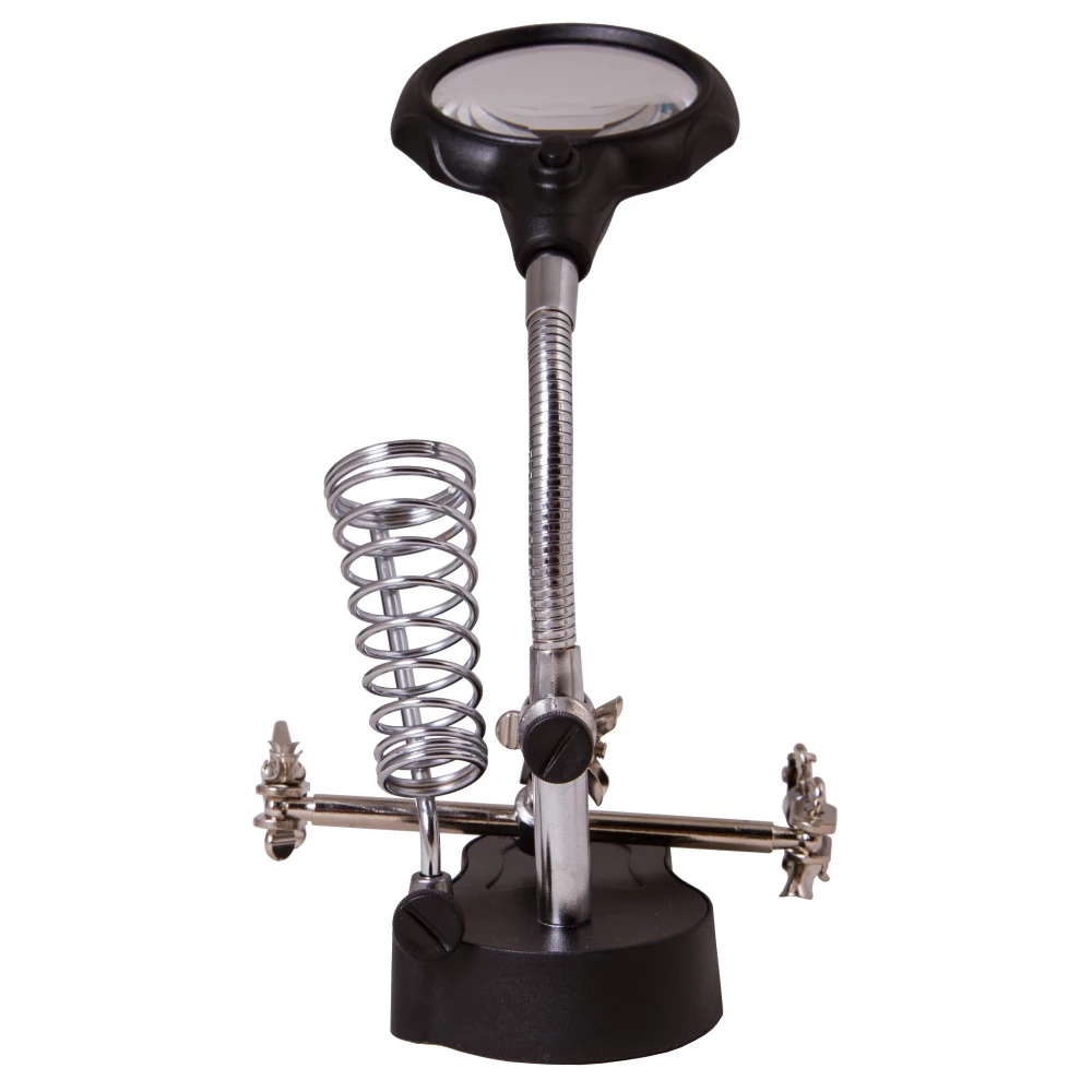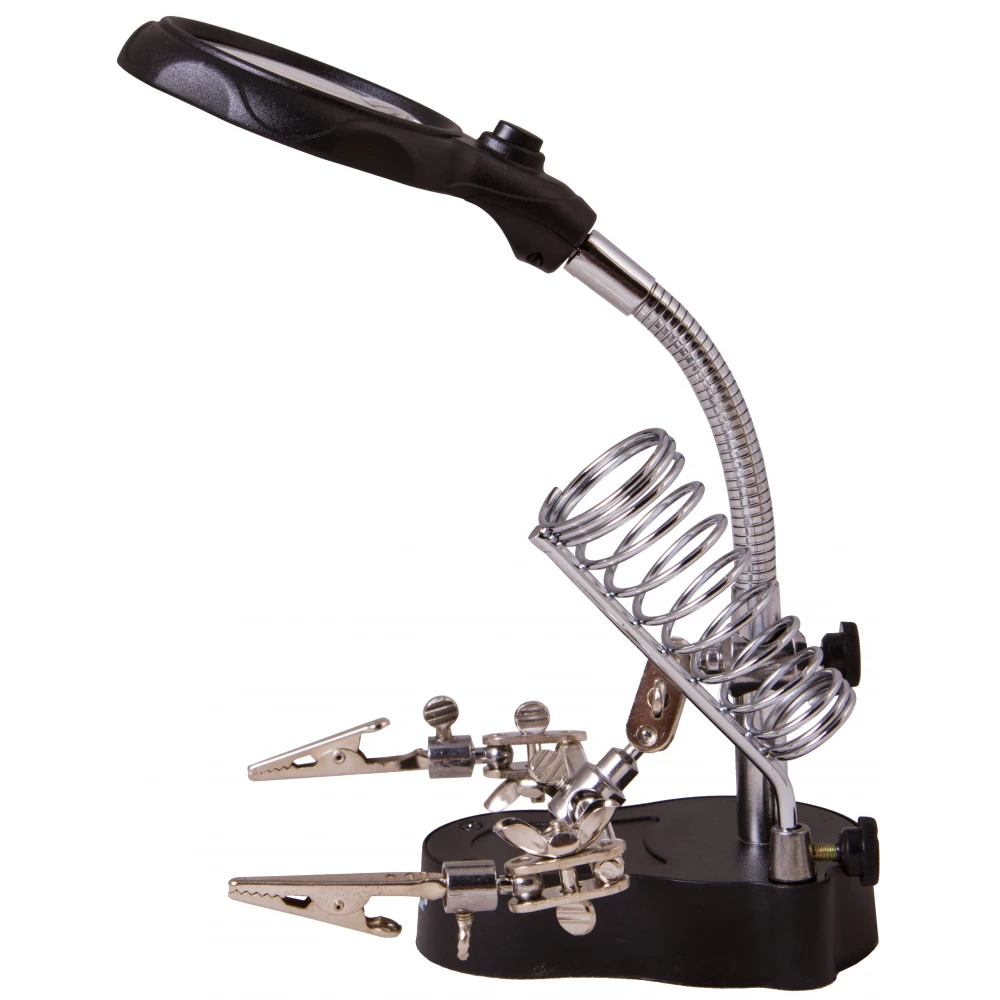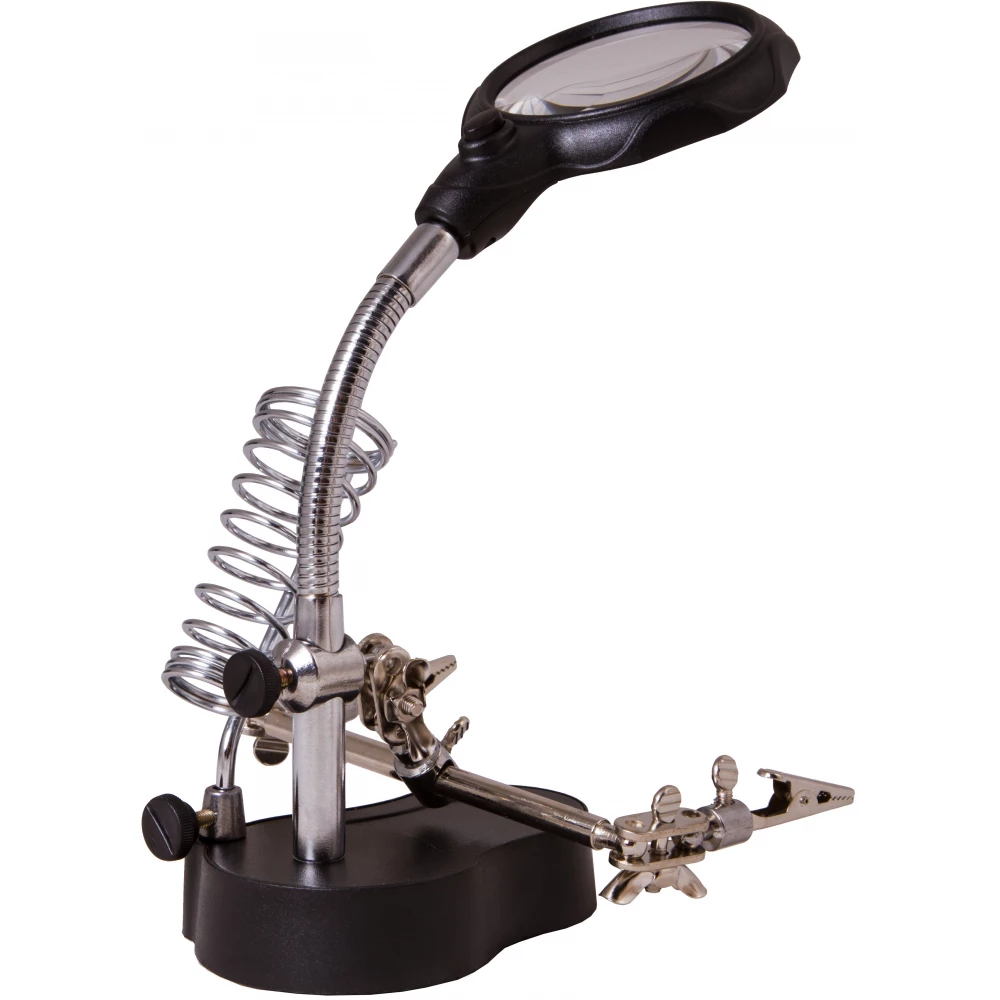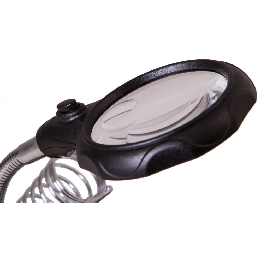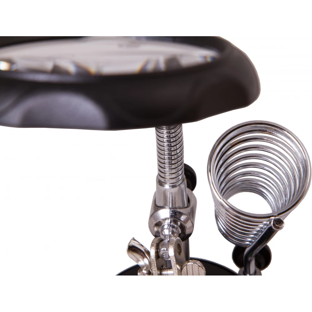The Levenhuk Zeno Desk D3 magnifier is great for working with printed circuits, precision electronics operations, soldering, repair, jewelry making or modeling. In addition to the magnifying glass and flexible neck, the Levenhuk Zeno Desk D3 magnifier also has a "third hand". This tool helps to fix circuits or small objects and makes working for a long time more comfortable. There's even a holder to keep your tools nearby while you work.