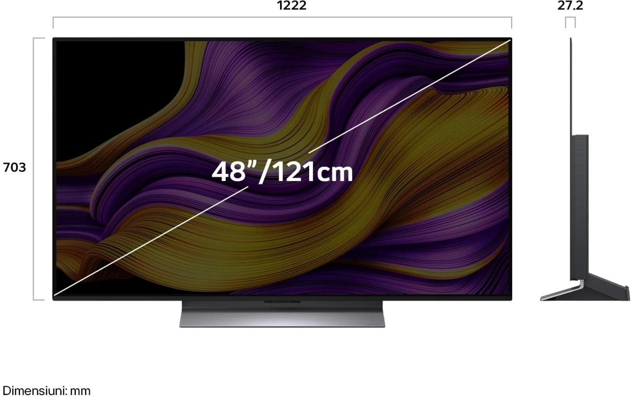 LG OLED EVO AI G5 48 "black television with 3840 x 2160 4K UHD resolution.