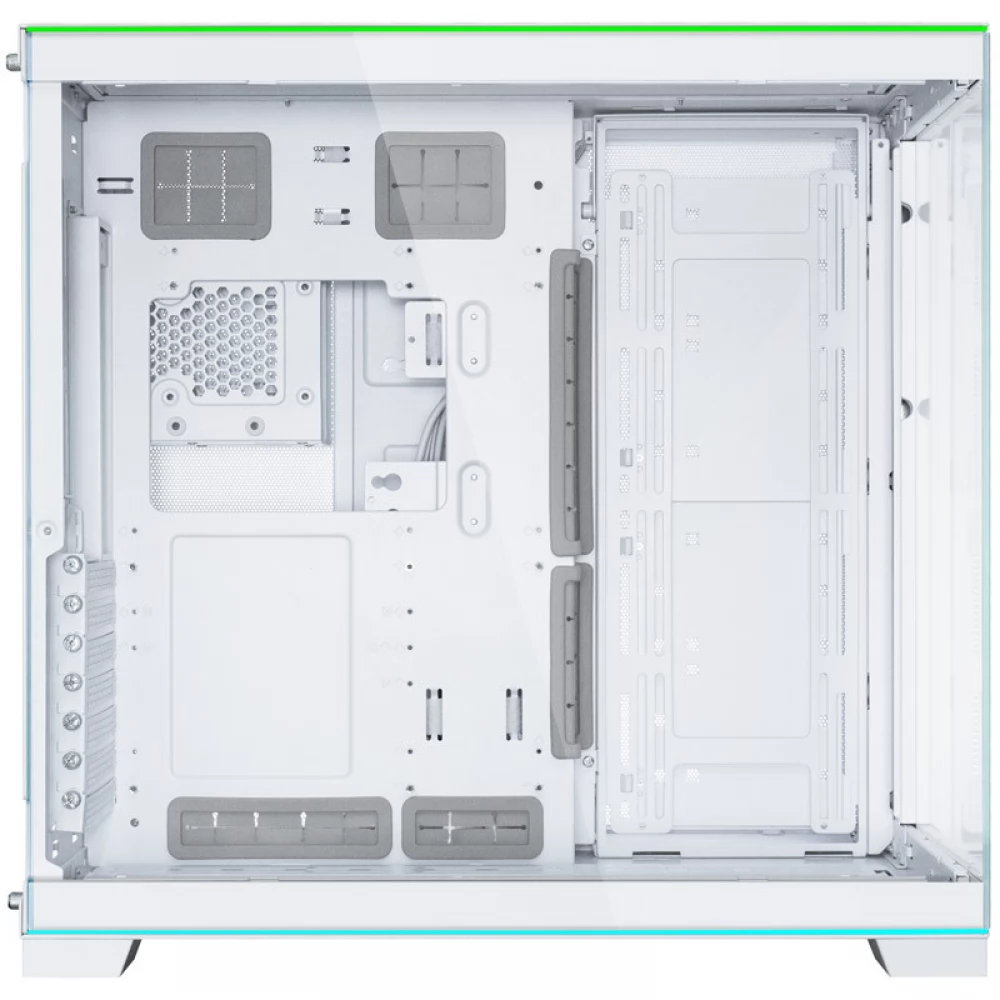 Lian Li O11 Dynamic EVO RGB In addition to unusual lighting options, this version allows for more space and an even more flexible design. With the already familiar reverse mode, you can turn the housing completely upside down, so you can always see the beautiful side of the system perfectly. The adjustable motherboard tray offers dozens of options for designing a gamer PC.