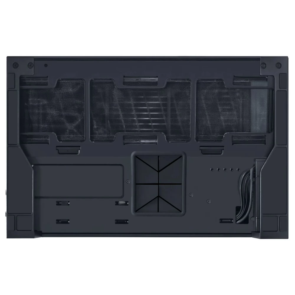 -Five pre-installed fans: three 120mm fans below, two sides-both with reverse-blade design