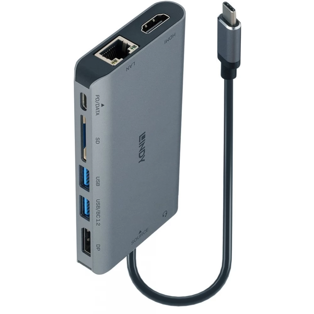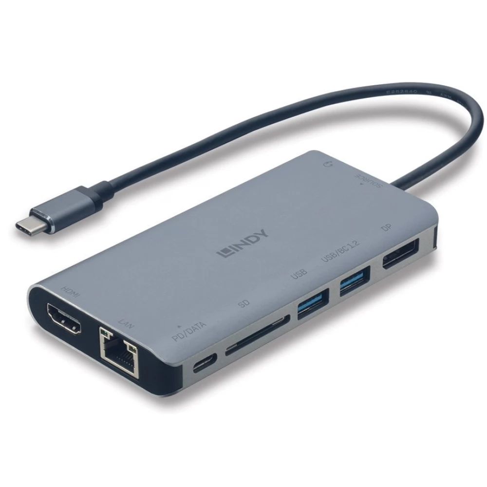 This docking station can open up a world of connectivity options for your device. DisplayPort, HDMI, Gigabit Ethernet, SD card slot, USB-C, SuperSpeed USB Type A ports (5 Gbps) and a combined 3.5 mm headphone jack. To ensure as much added functionality as possible, the corresponding USB Type A port has SuperSpeed data transfer and Battery Charging 1.2, meaning you can charge connected mobile devices.