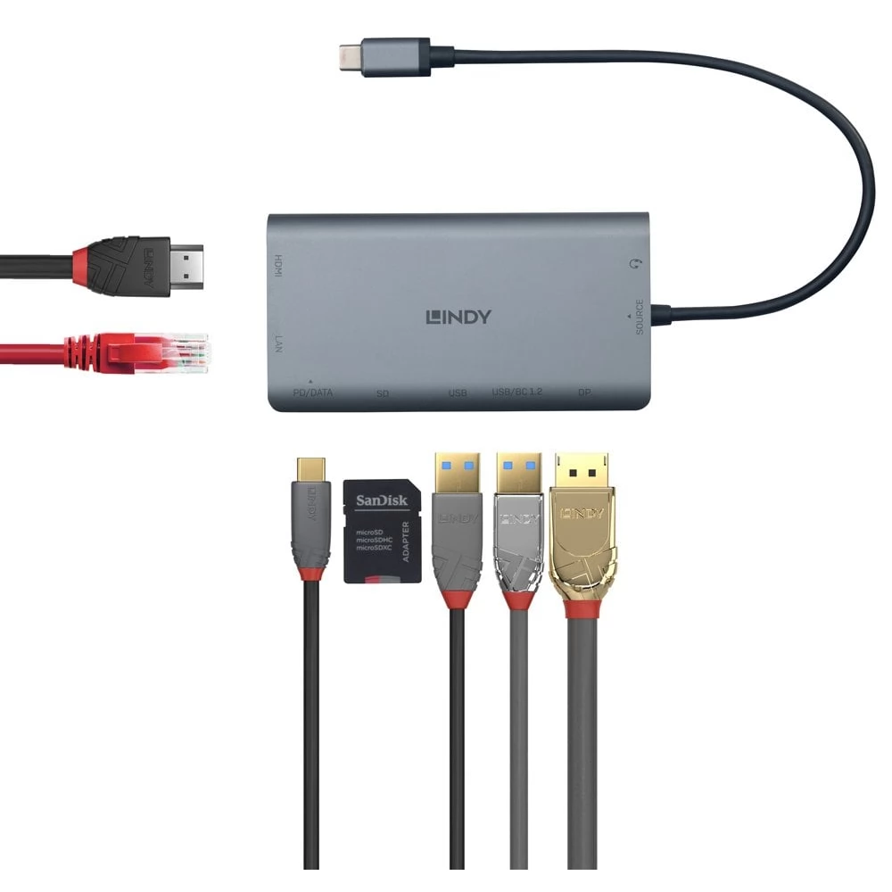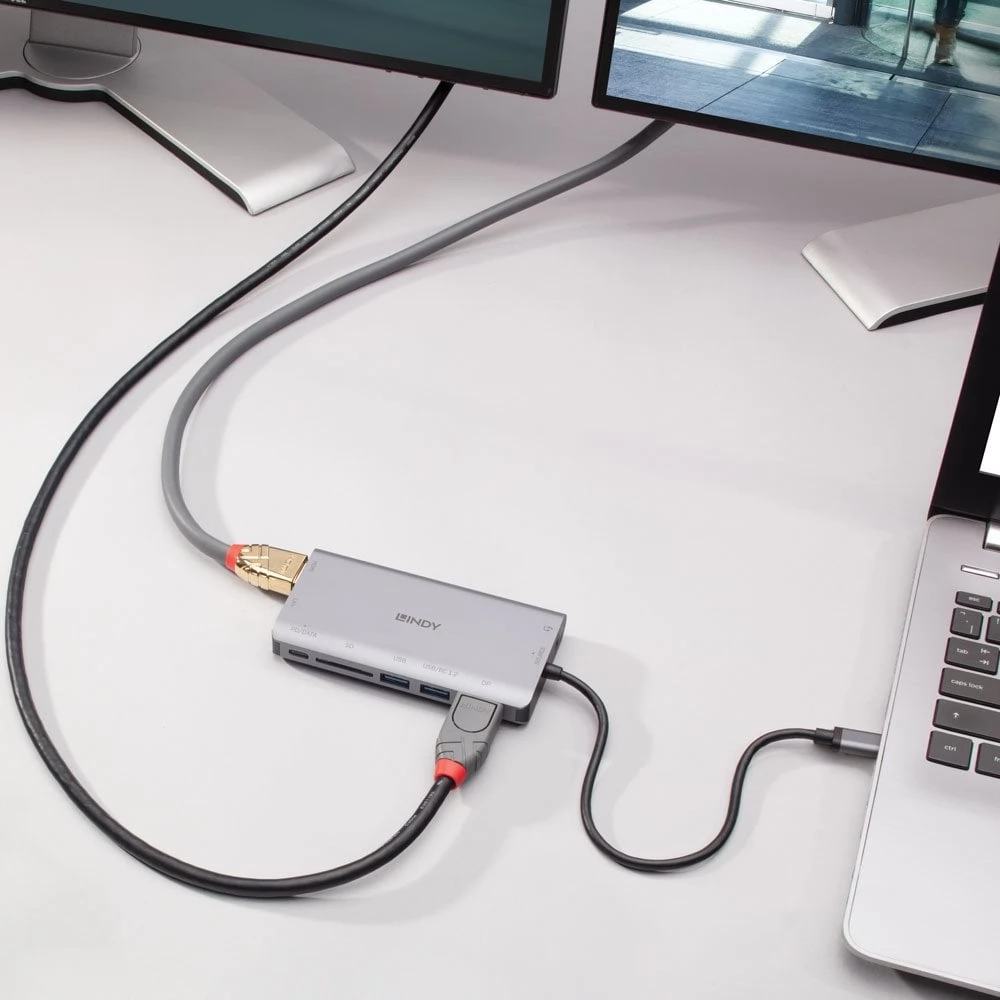 - Adds 2 USB Type A ports and 1 USB Type C port (5 Gbps), 4K HDMI and DP ports, Gigabit Ethernet and audio port to a laptop
