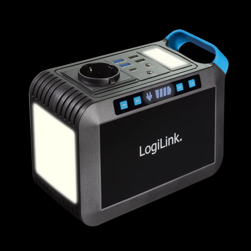 LOGILINK Portable erőmű. 300 W. 64 000 mAh. 7x kimenet. IP20. black / blue