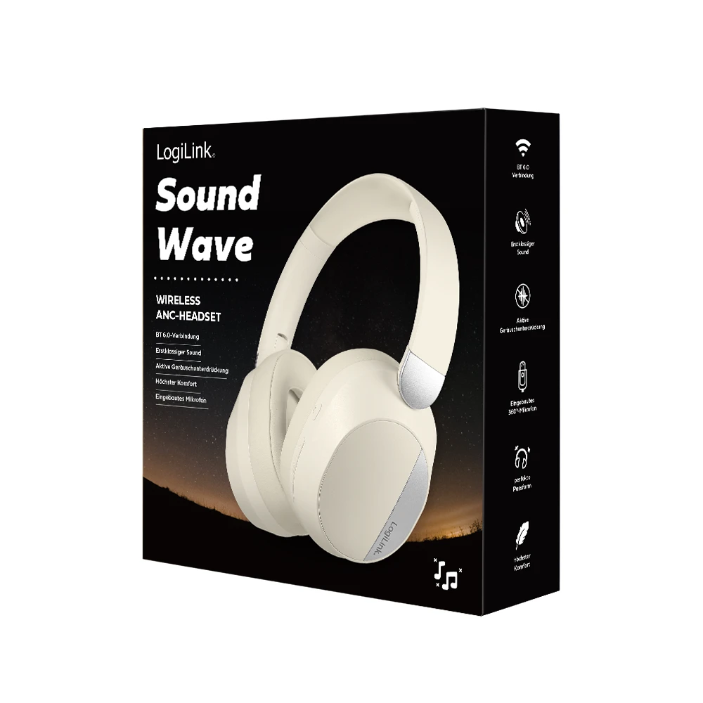 LOGILINK Sound Wave BT 6.0 ANC krém-ezüst