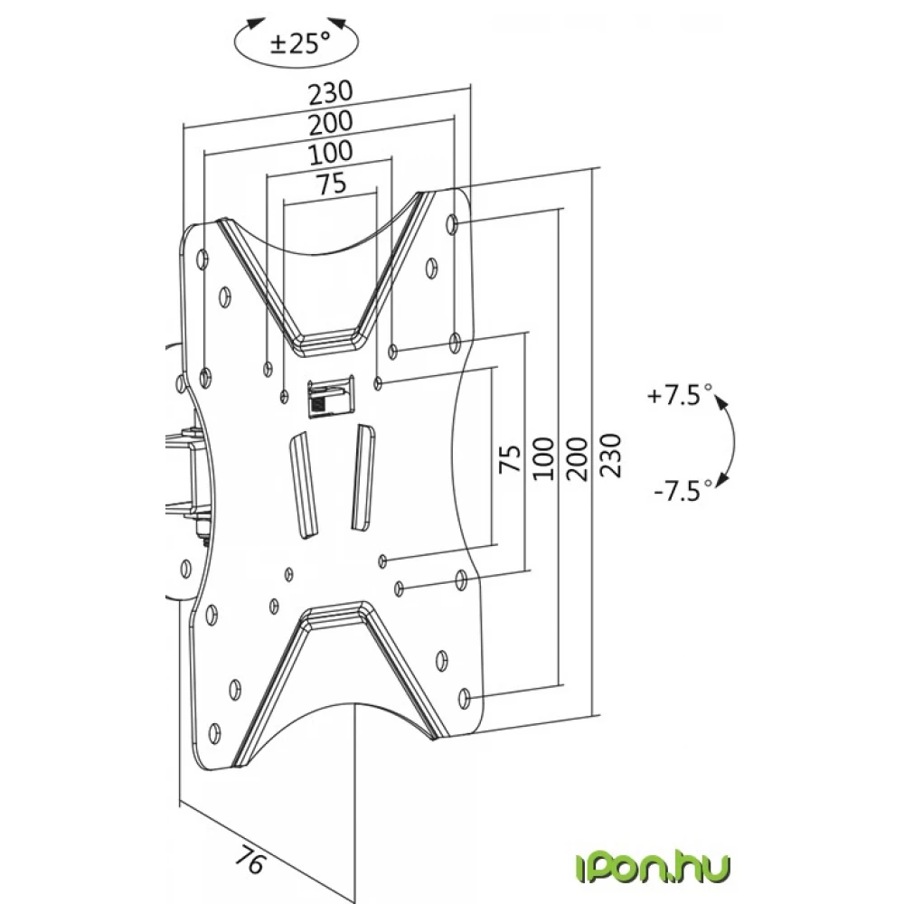- Tilt: -7.5 ° / + 7.5 °