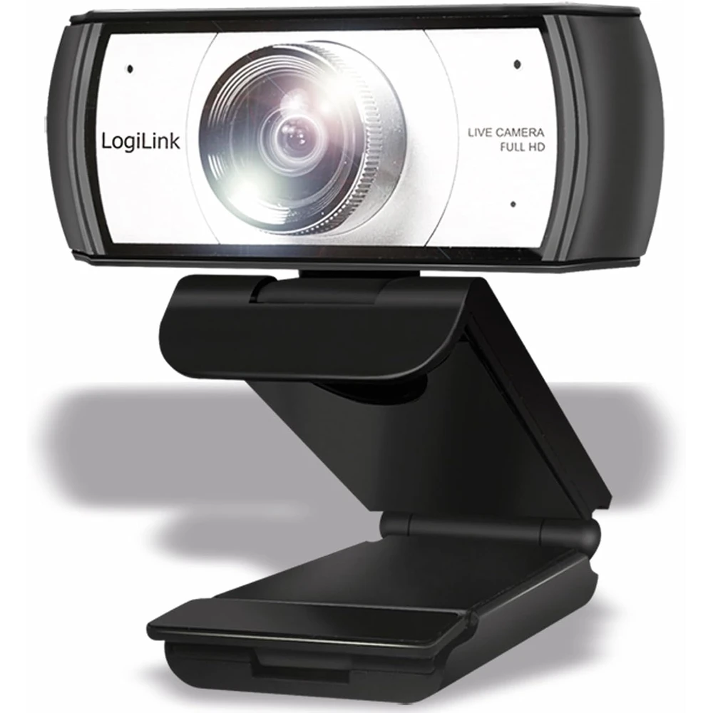 Full HD resolution webcam with built-in microphone.