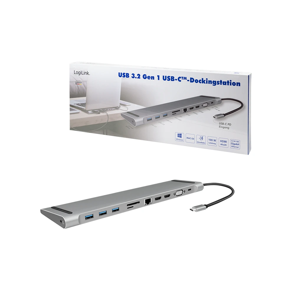 LOGILINK USB 3.2 Gen 1 Docking Station USB-C 11-Port PD silver
