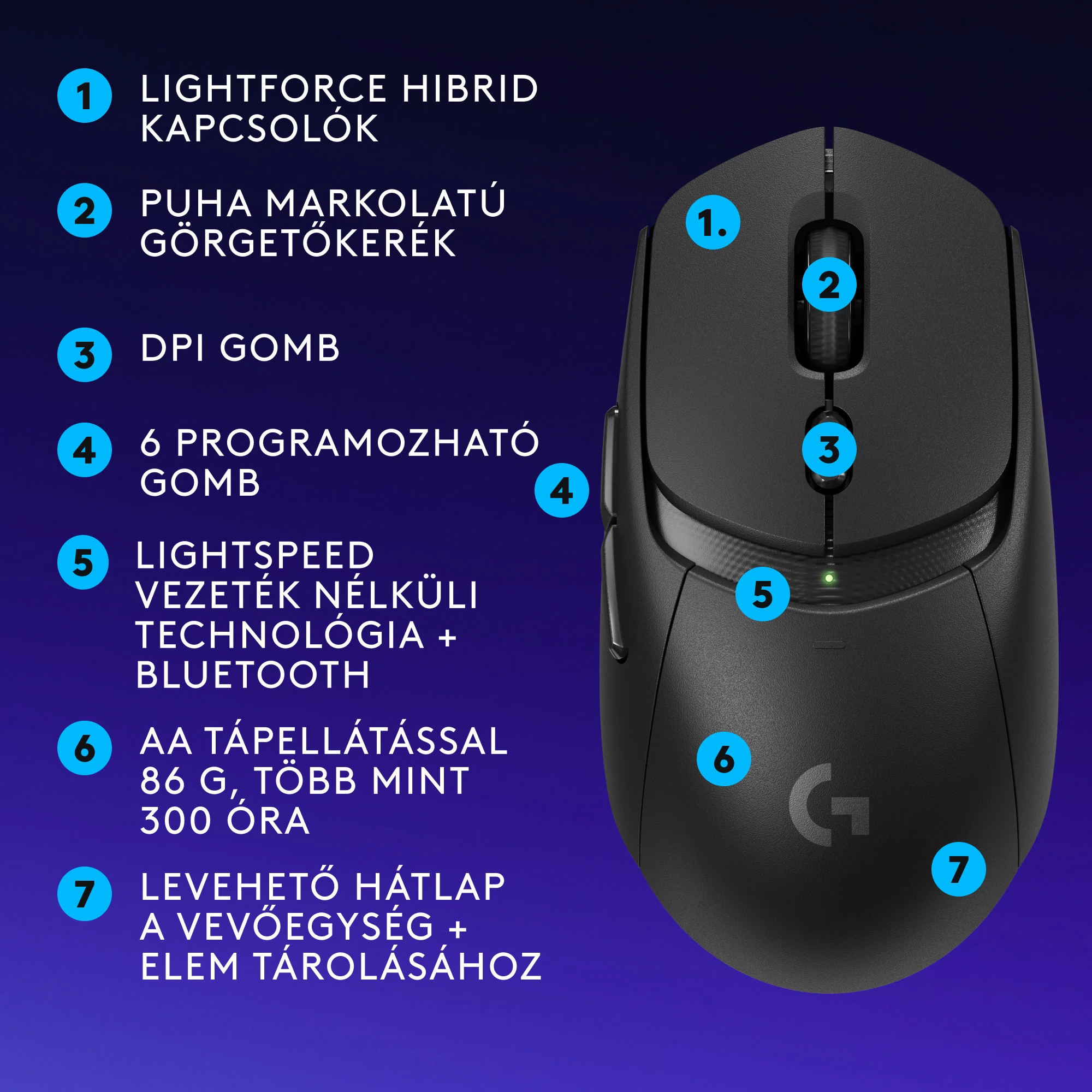 Lightforce hybrid switches combine the best features of optomechanical switches for a perfect combination of speed and hand resistance. The G309 LightSpeed ​​Lightforce switches provide light -speed optical click detection, with virtually immediate reaction time, mechanical sense and feedback, which gives you confidence in each click.