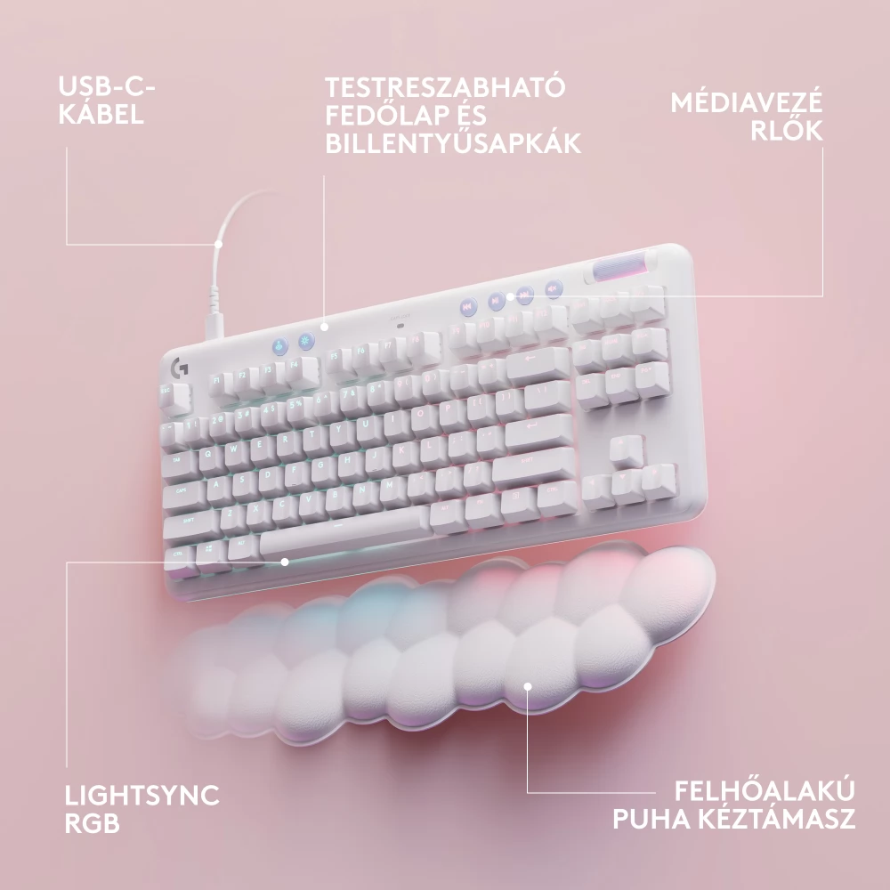LOGITECH G713 Gamer keyboard Tactile kapcsolók White