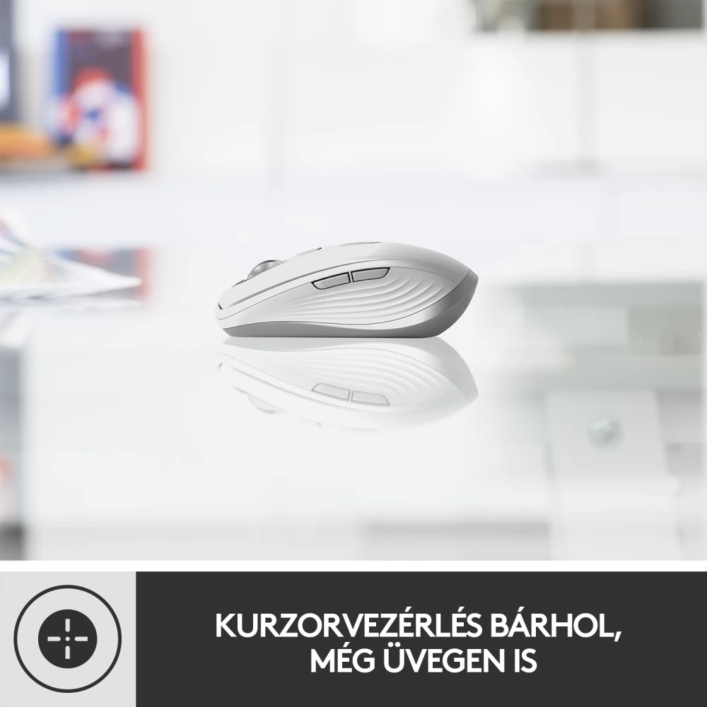 MX Anywhere 3 can move the cursor on virtually any surface, even glass, if it is at least 4 mm thick. Therefore, you can work without problems at your desk, in your favorite coffee shop or even sitting in an armchair.