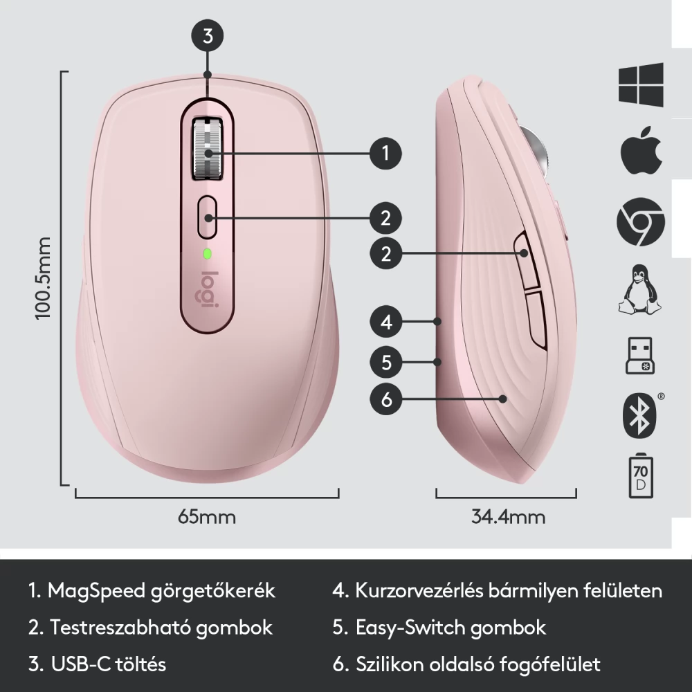 LOGITECH MX Anywhere 3 Cable without mouse 2.4GHz&Bluetooth MagSpeed Scroll Multidevice USB-C Pink