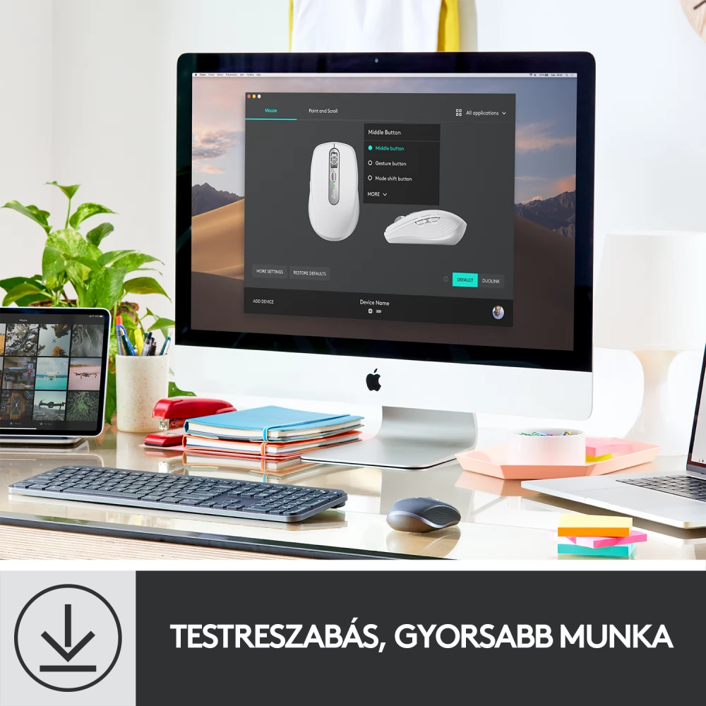 MX Anywhere 3 is fully customizable in every application you use, and with customized factory profiles for Adobe Photoshop®, Adobe Premiere Pro, Final Cut Pro™, Google Chrome™, Safari™, and Microsoft Word®, Excel® and PowerPoint®, faster can work.