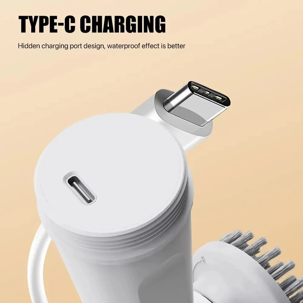 There is no need for another cable in the apartment, the cleaning brush has a USB Type-C connection, so it can be charged with any other Type-C cable in addition to its own cable. The hidden connector provides greater security against water.