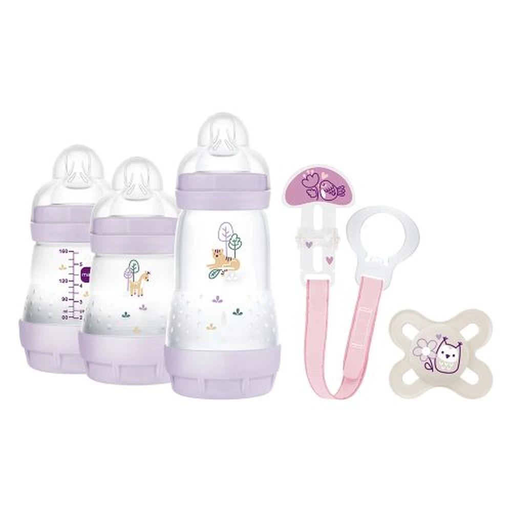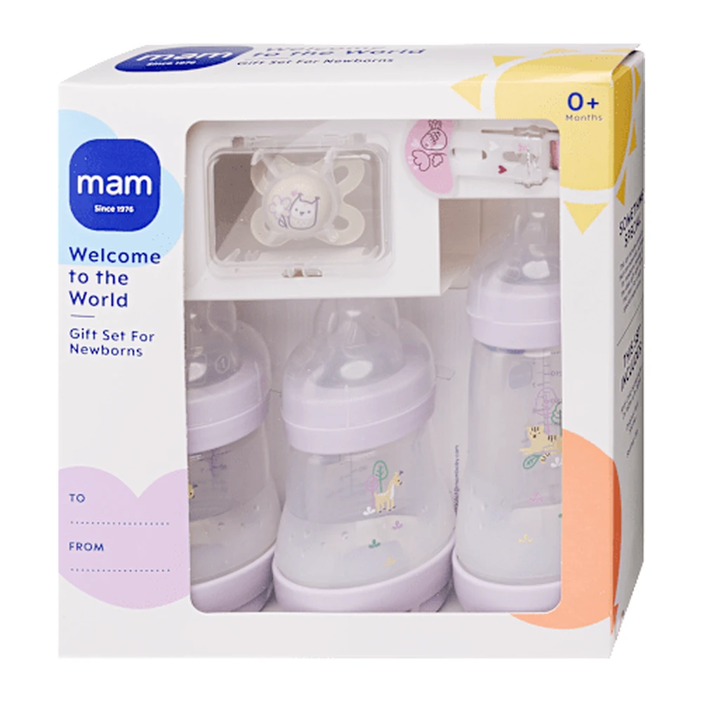 Here's a great surprise when your girlfriend has a baby girl. In the gift set, you will find everything a newborn baby girl needs. It also contains baby bottles of different sizes, a pacifier, a pacifier steriliser and a pacifier strap. All this in a very pretty pink color. All MAM products are made from BPA- and BPS-free materials.
