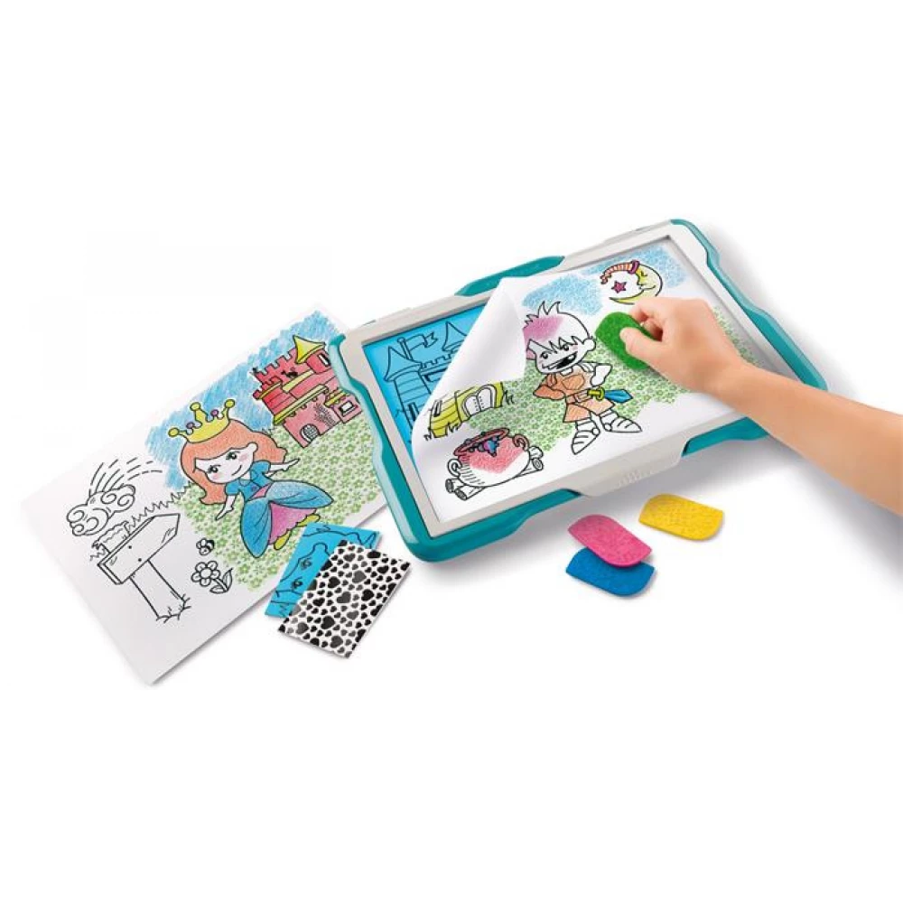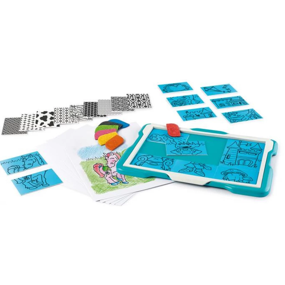 Be creative: a drawing board in the hands of every child! A fun and original drawing board for fabulous creations with many combinations. Rub the outline, color the pattern and you're done!