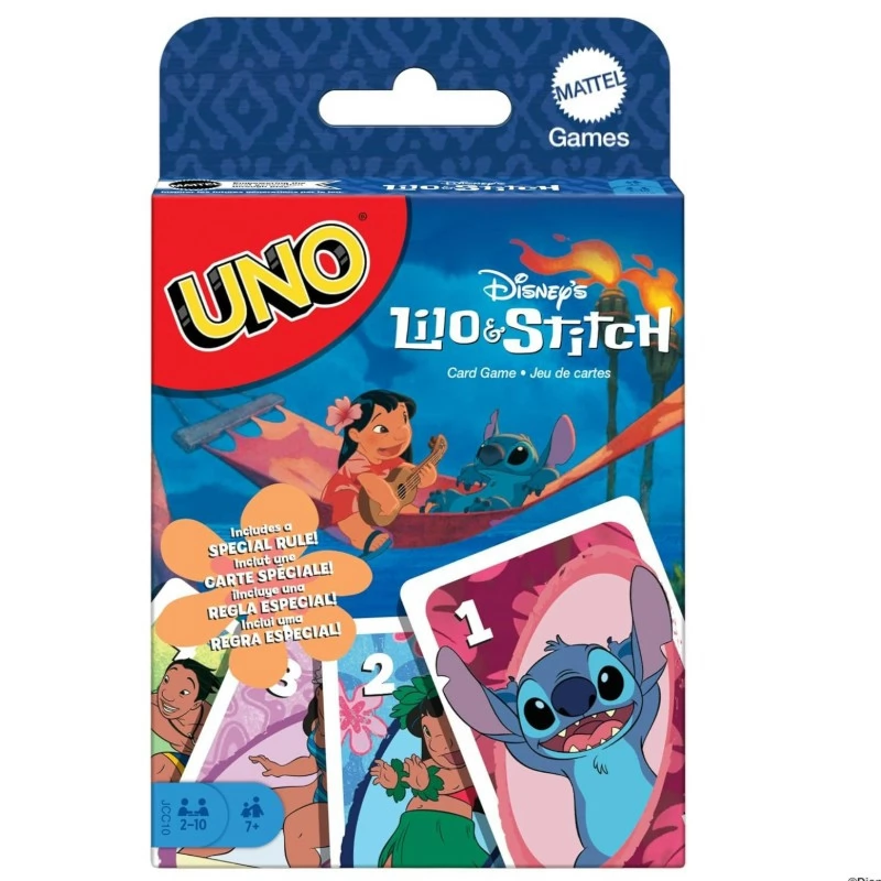 The classic UNO card game now comes to life with Disney popular players, Lilo and Stitch! This cheerful and colorful deck enchants every child while developing attention and strategic thinking.