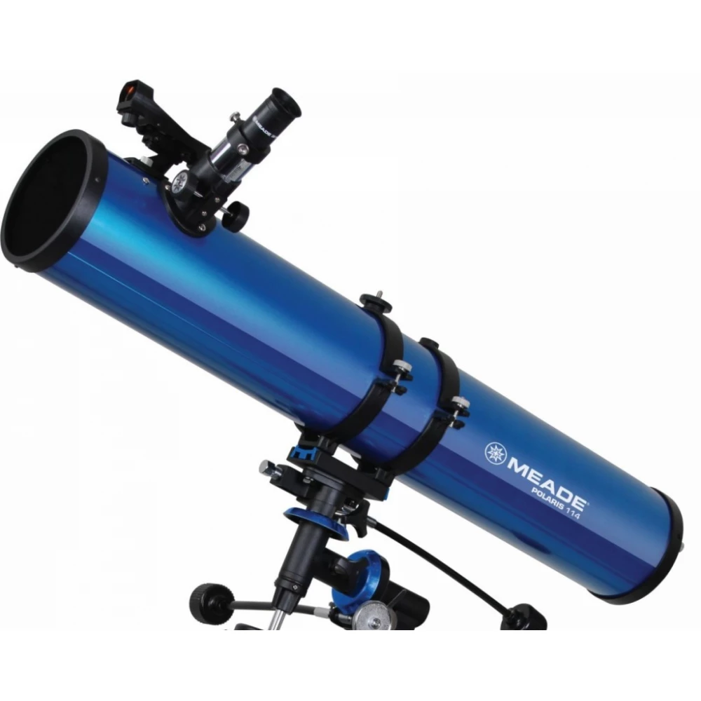 The Meade Polaris 114mm EQ Reflector Telescope is a quality instrument for observing the Solar System and deep-sky objects. It is a reflector telescope that always produces clear images without chromatic distortion. The telescope is ideal for rural observations.