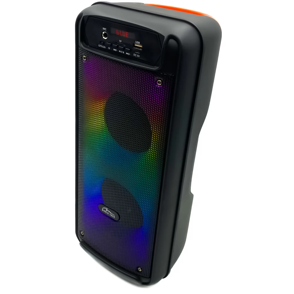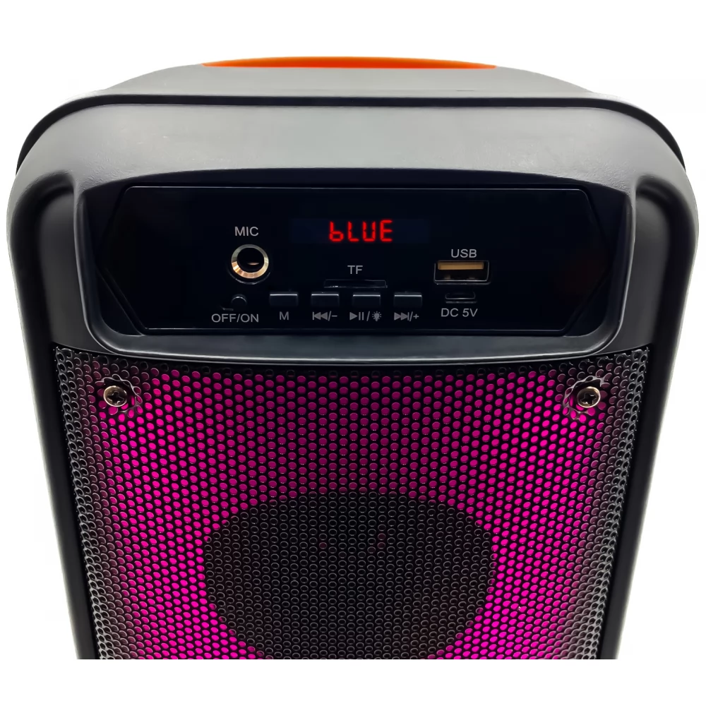 Large wireless Bluetooth speaker FLAMEBOX UP MT3177 with multicolored RGB / FLAME lighting, FM radio, MP3 player from memory cards and flash drives. Total power 14W, 600W.