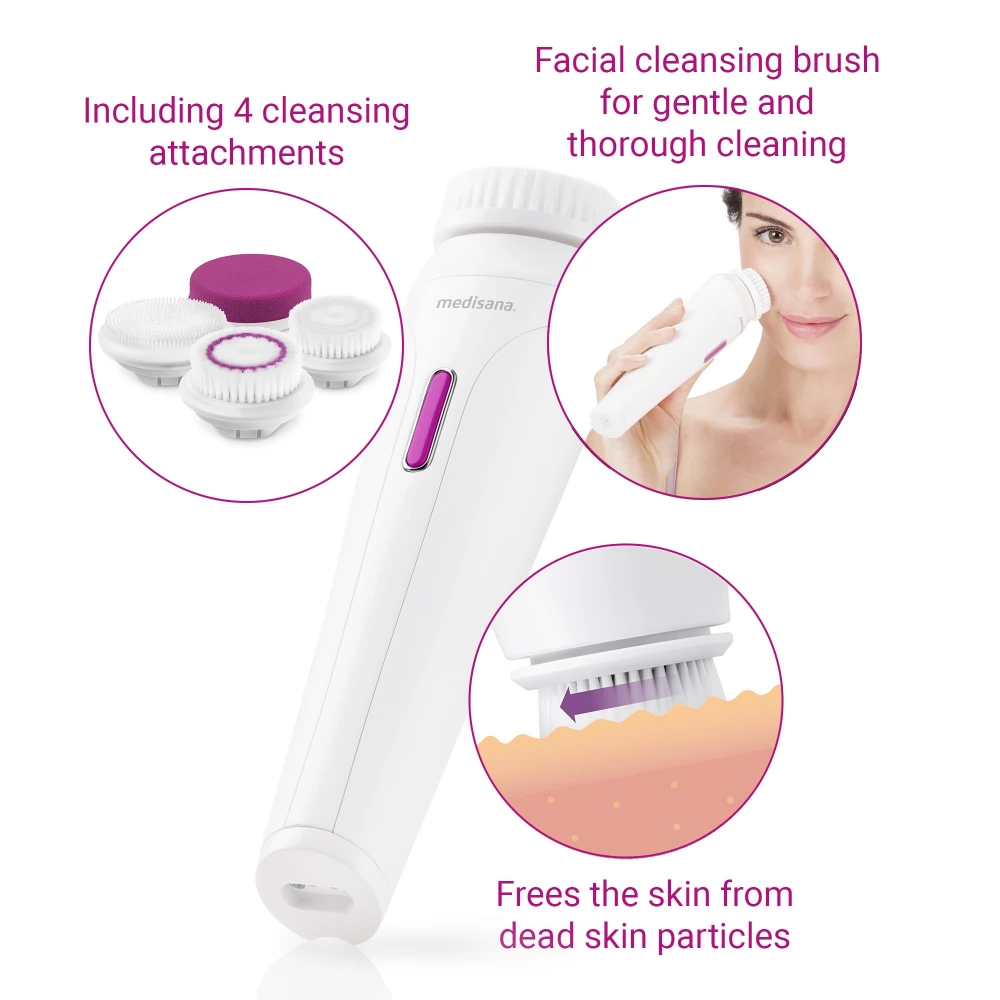 Facial cleansing is an extremely important skin care ritual, especially for women. The Medisana FB 885 facial cleansing brush, which is equipped with a charging unit and a practical rechargeable lithium-ion battery, enables particularly gentle and thorough skin cleansing. It cleans the sensitive skin of the face from impurities and dead skin cells - for a convincing cleansing effect and a brighter complexion.