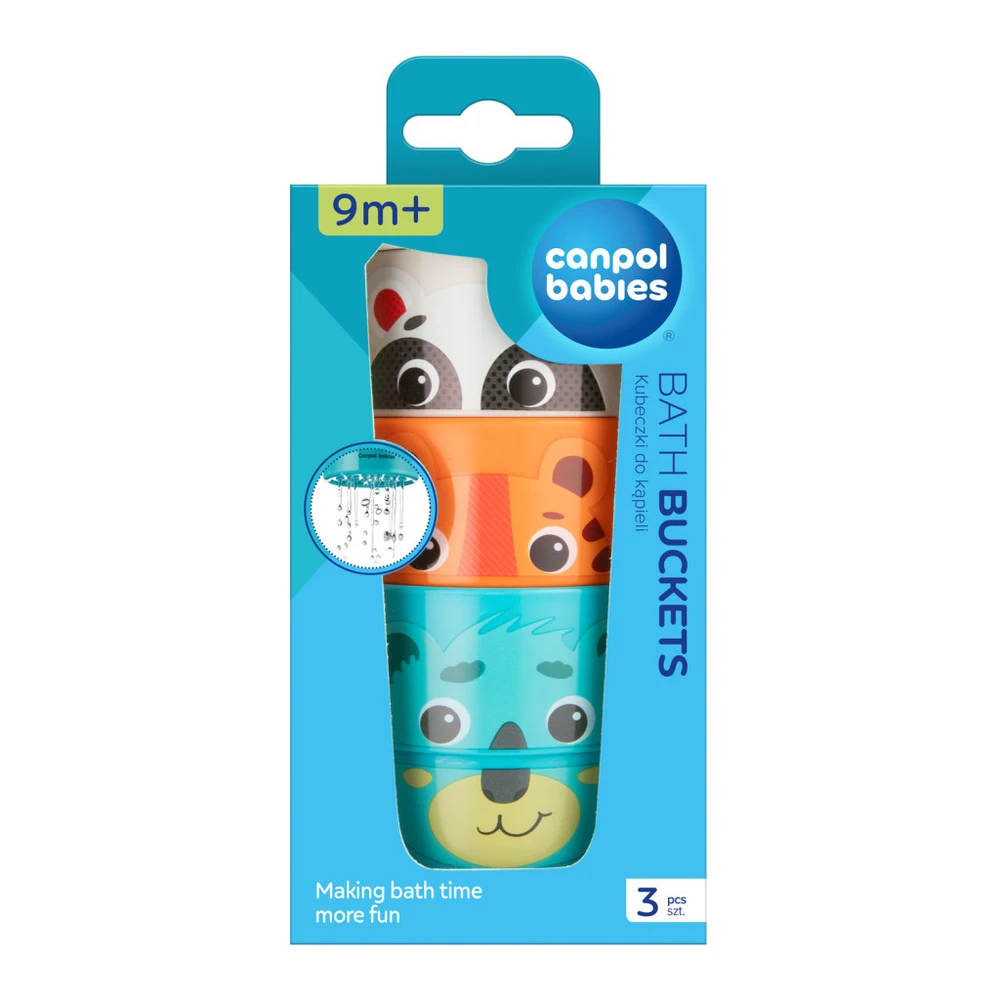 Let the Canpol babies cute bath toy consisting of three buckets of water be your baby's first splashing toy! A product from the HELLO LITTLE collection, it supports the development of your child's desire to explore and learn while bathing.