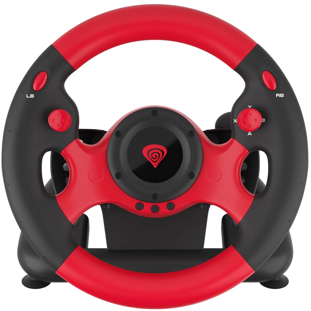 15-button, 2-motor steering wheel with 2 pedals, 2-meter cable, USB connection.