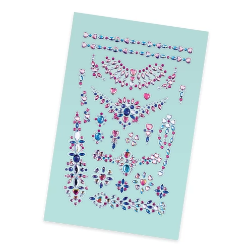 A set of colorful, shiny jewelry stickers that children can stick on their faces and hands.