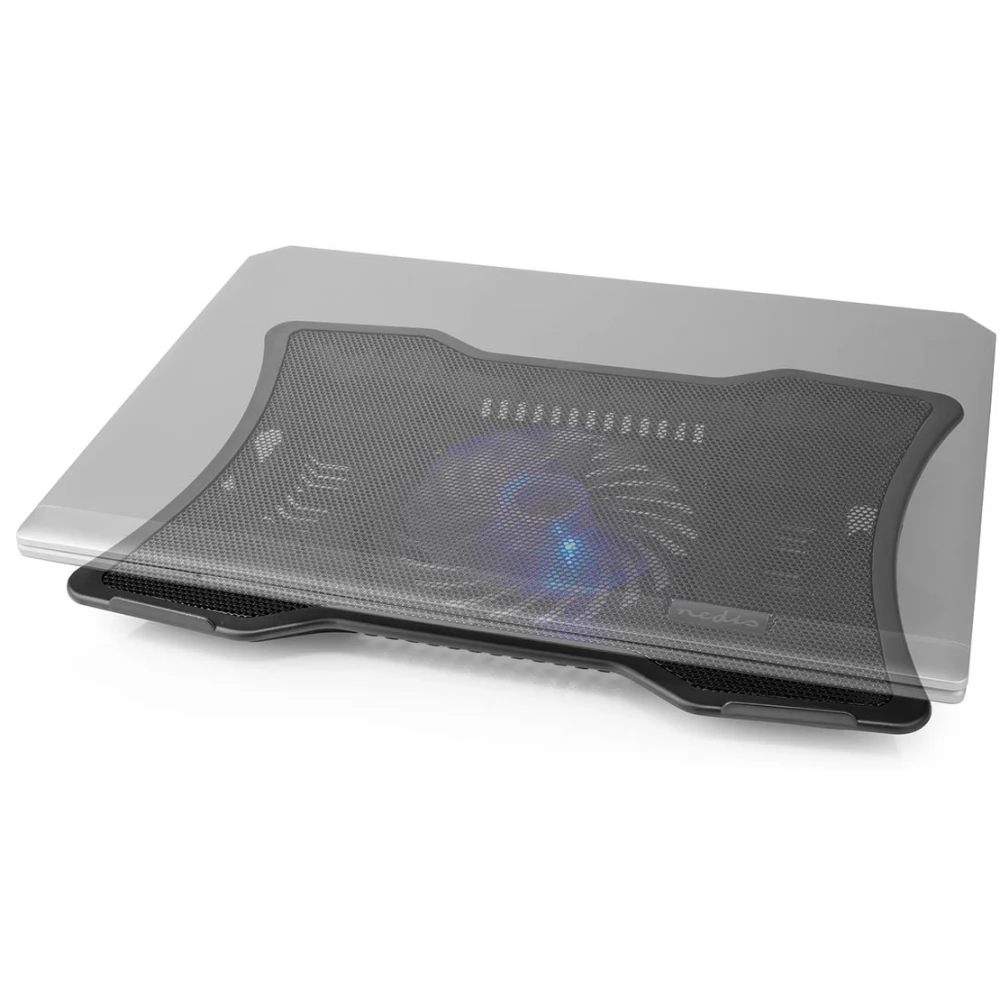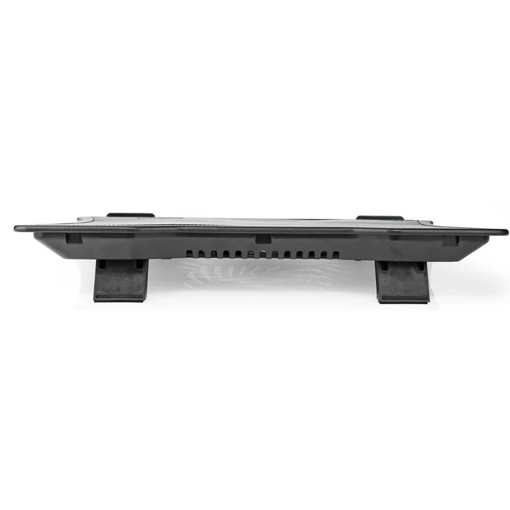 This notebook cooling stand is suitable for up to 17-inch notebooks, and features a metal mesh surface and a 12.5 cm high-performance, quiet fan that prevents devices from overheating. The versatile stand can also be used as a notebook stand and cooling surface. The stand is USB powered and has a USB pass-through connector, eliminating the need for an external power source. In order to create the ideal working height, different viewing angles can be set.