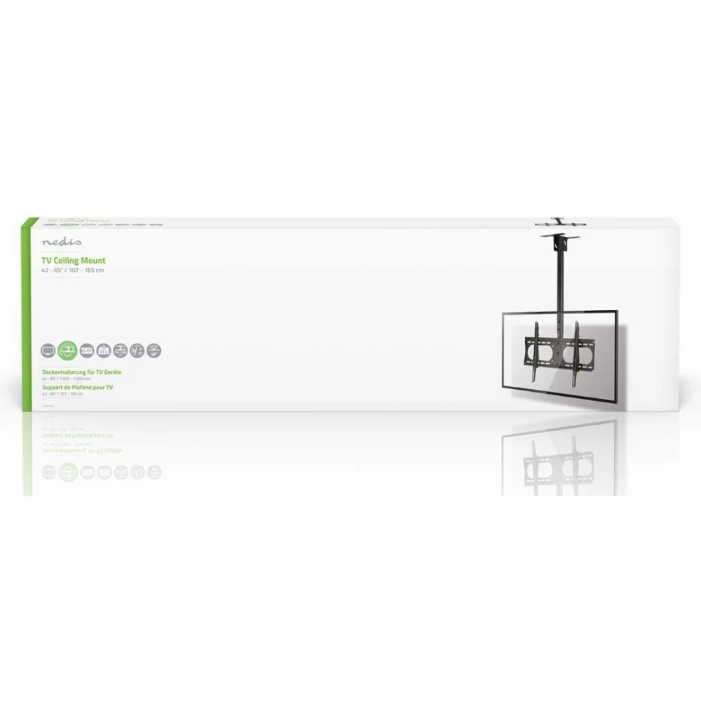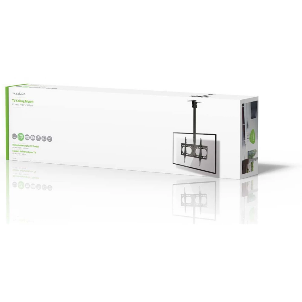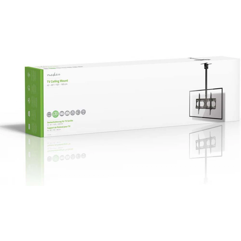 The console allows you to mount the TV on the ceiling, which blends in with its surroundings. The package includes the manual and all necessary accessories, so installation is quick and easy.