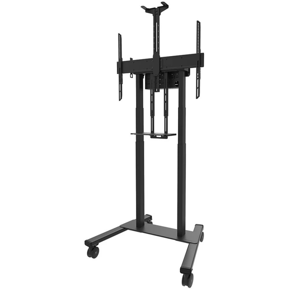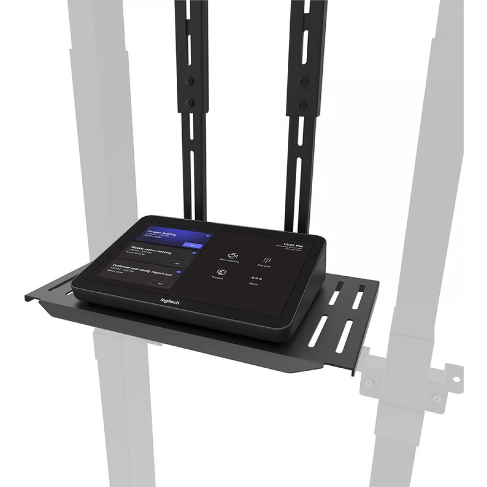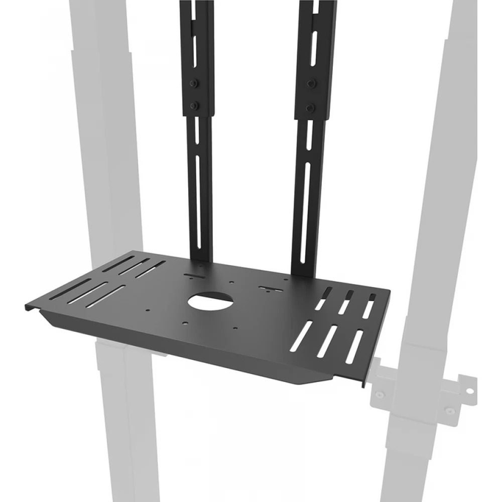 The Newstar AFL-875BL1 Neomounts is a multimedia kit that is optional for the FL55-875BL1 Mobile Floor Stand and the WL55-875BL1 Wall Mount. The kit enables the installation of a separate cam shelf and multimedia device shelf on the car. The universal cam shelf can be mounted above or below the screen and can be adjusted in height to fit the screen. In addition, the cam shelf can be installed on the front and back of the holder. The kit includes an adapter for the Logitech Rally Bar and Rally Bar Mini (can be placed above or below the screen).