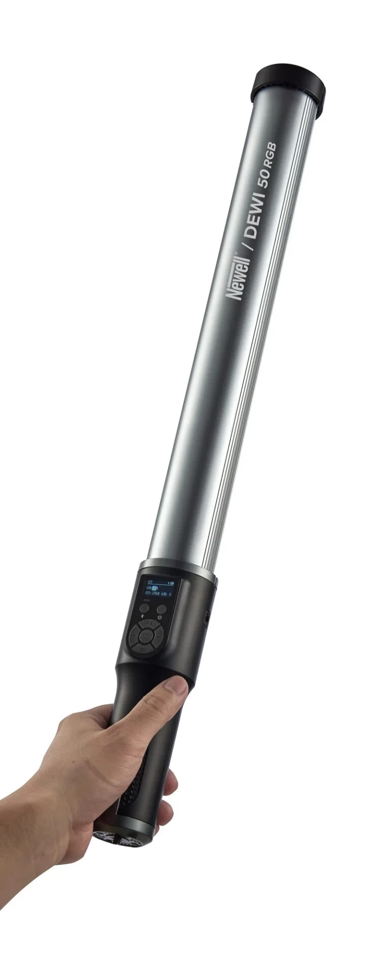 The Newell RGB DEWI 50 LED lamp, with its characteristic lightsaber and 60 cm, opens up a whole new creative opportunities. The light panel allows the precise light direction, making it an ideal tool for painting with light, creating dynamic effects while moving or highlighting details in the scenery. The ergonomic handle allows comfortable "freehand" work, providing complete freedom in shaping the mood during photography and video recording. DEWI 50 will be appreciated by filmmakers, photographers and internet creators who are looking for a mobile and versatile solution to make effective, creative shots. The lamp will work well for portraits, where it allows the light to be shaped, and in action scenes, where it gives you dynamic and intensity.