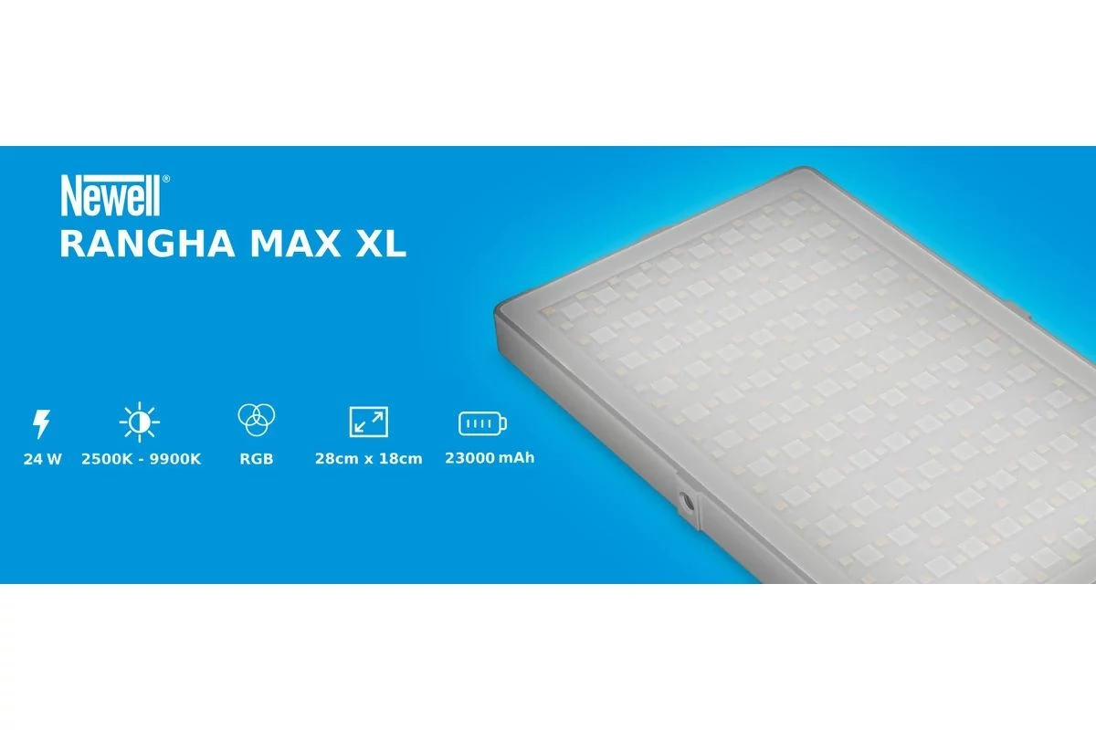 The Rangha Max XL is an enlarged version of Newell's acclaimed LED panel for photographers and videographers. The 28 x 18 cm device allows a maximum luminous flux of 1600 lumens to be reached, with a color temperature of 9900 K. Due to its relatively low weight and easy installation, the lamp is excellent for studio and outdoor use. This powerful and compact LED panel is a "must have" for any photographer, filmmaker, vlogger or influencer who posts videos on YouTube or TikTok.